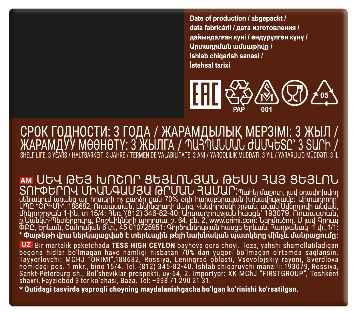 Чай черный байховый цейлонский мелкий.