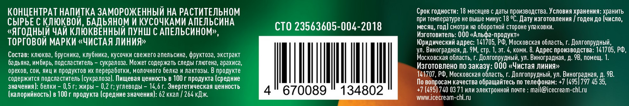 Приглашаем посидеть за чашечкой Клюквенного пунша. Если вам уже надоели обычные чай и кофе, то пришло время попробовать что-то новое и необычное. Идеальный вариант - замороженный чай со вкусом клюквы и апельсина от Чистой линии. Всё, что нужно это кружка и кипяток. Даже ложка не потребуется. Просто опустите замороженную основу с полезными ягодами, пряностями и фруктами в чашку, залейте горячей водой и размешайте палочкой. Через 30 секунд вы можете наслаждаться ароматным напитком и наслаждаться уютом его пряного вкуса. Прилив сил и энергии обеспечен.