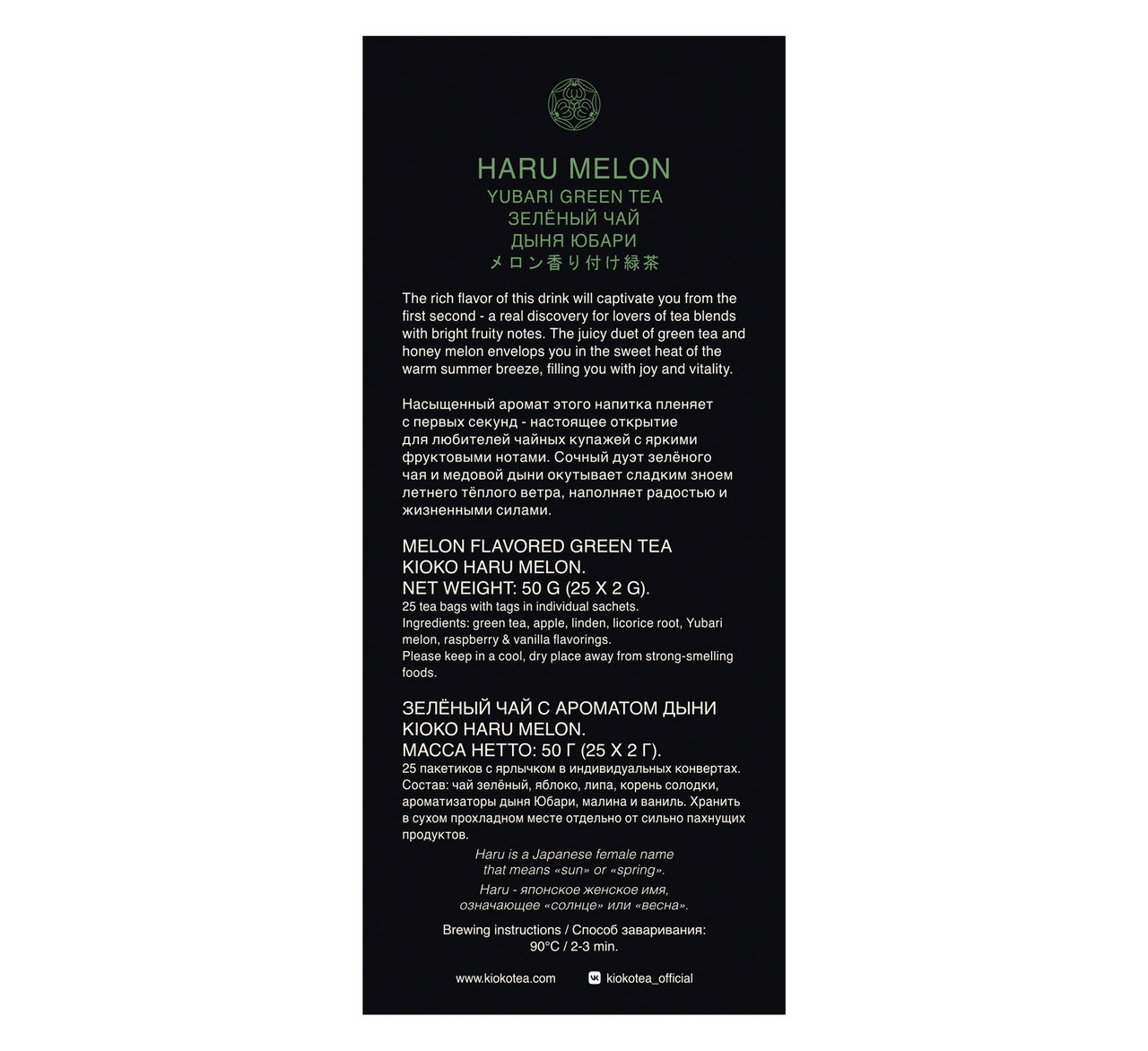 Чай зеленый Kioko с ароматом дыни (2г x 25шт), 50г