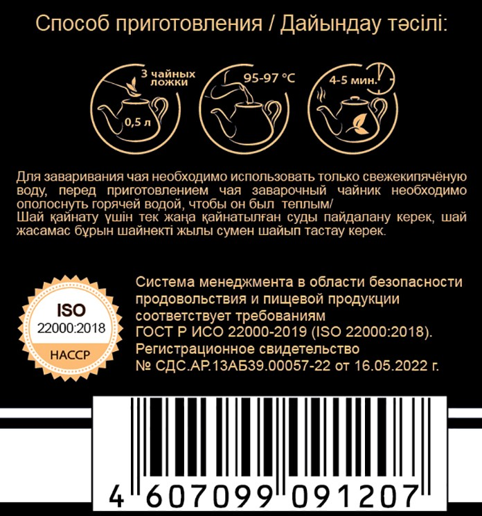 Чай черный байховый листовой.