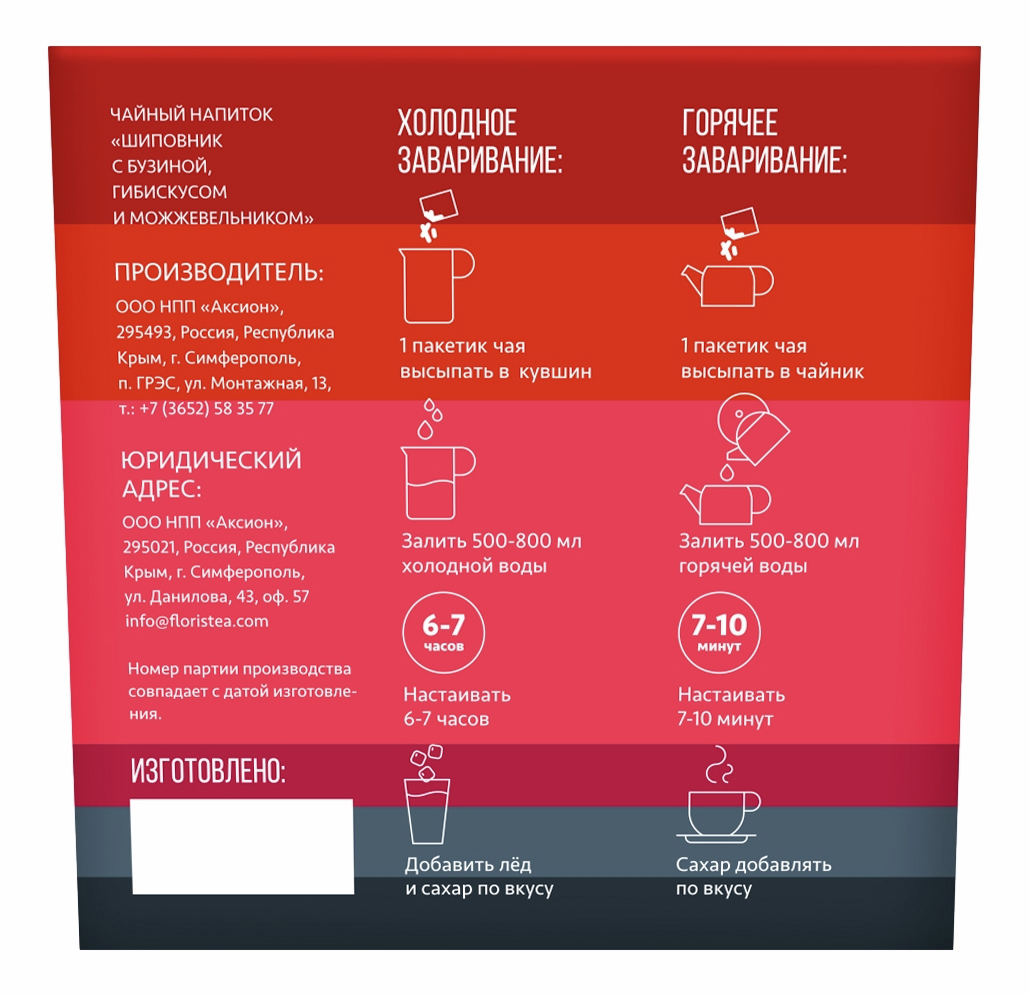 Чай травяной Floris Шиповник-бузина-гибискус-можжевельник (10г x 8шт), 80г
