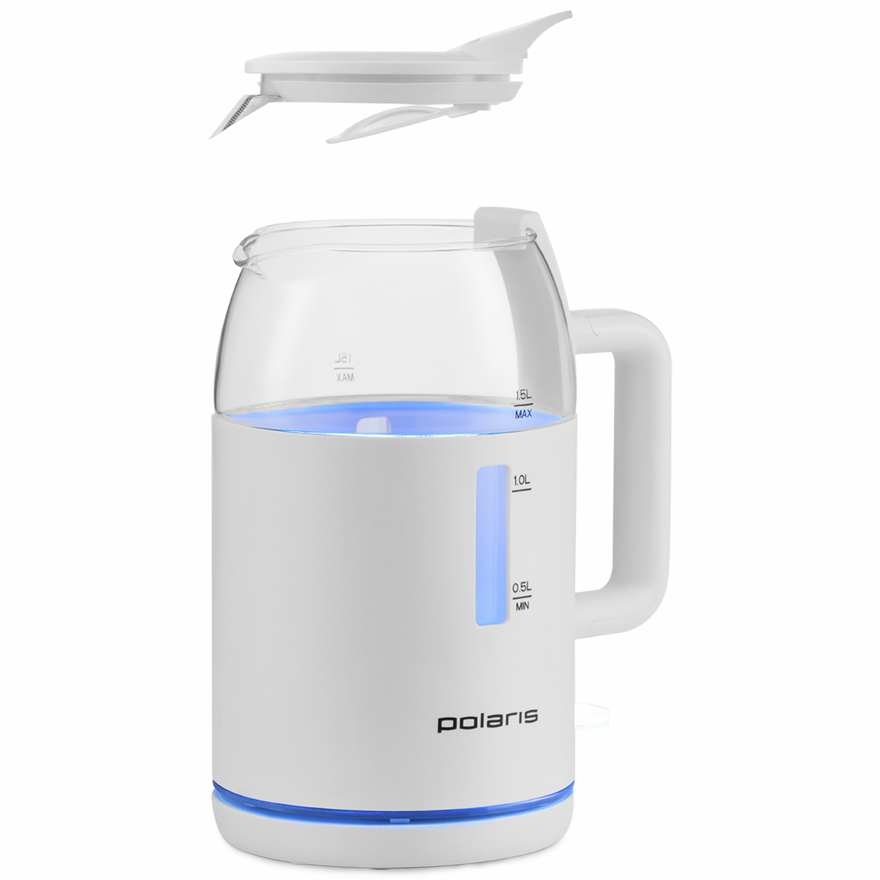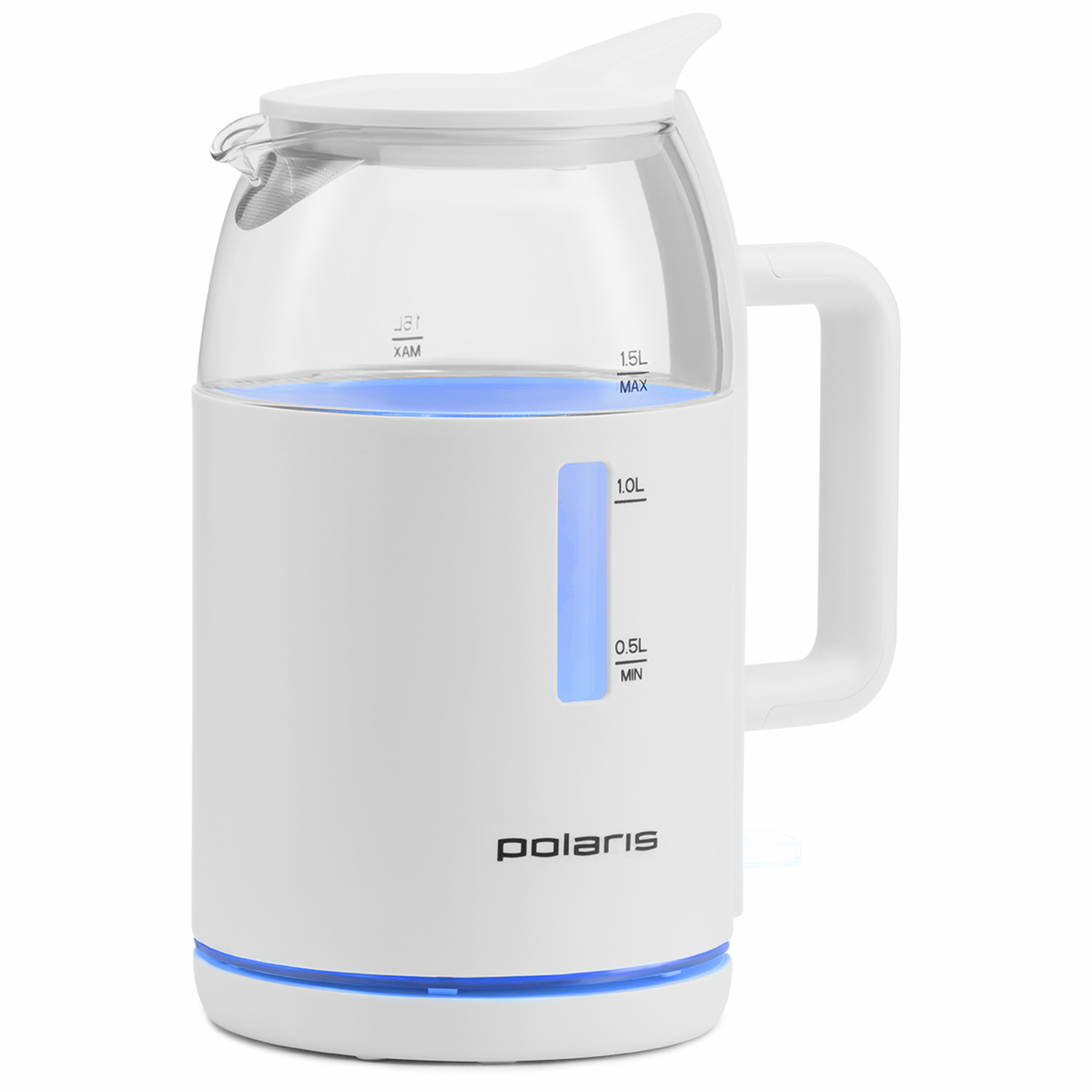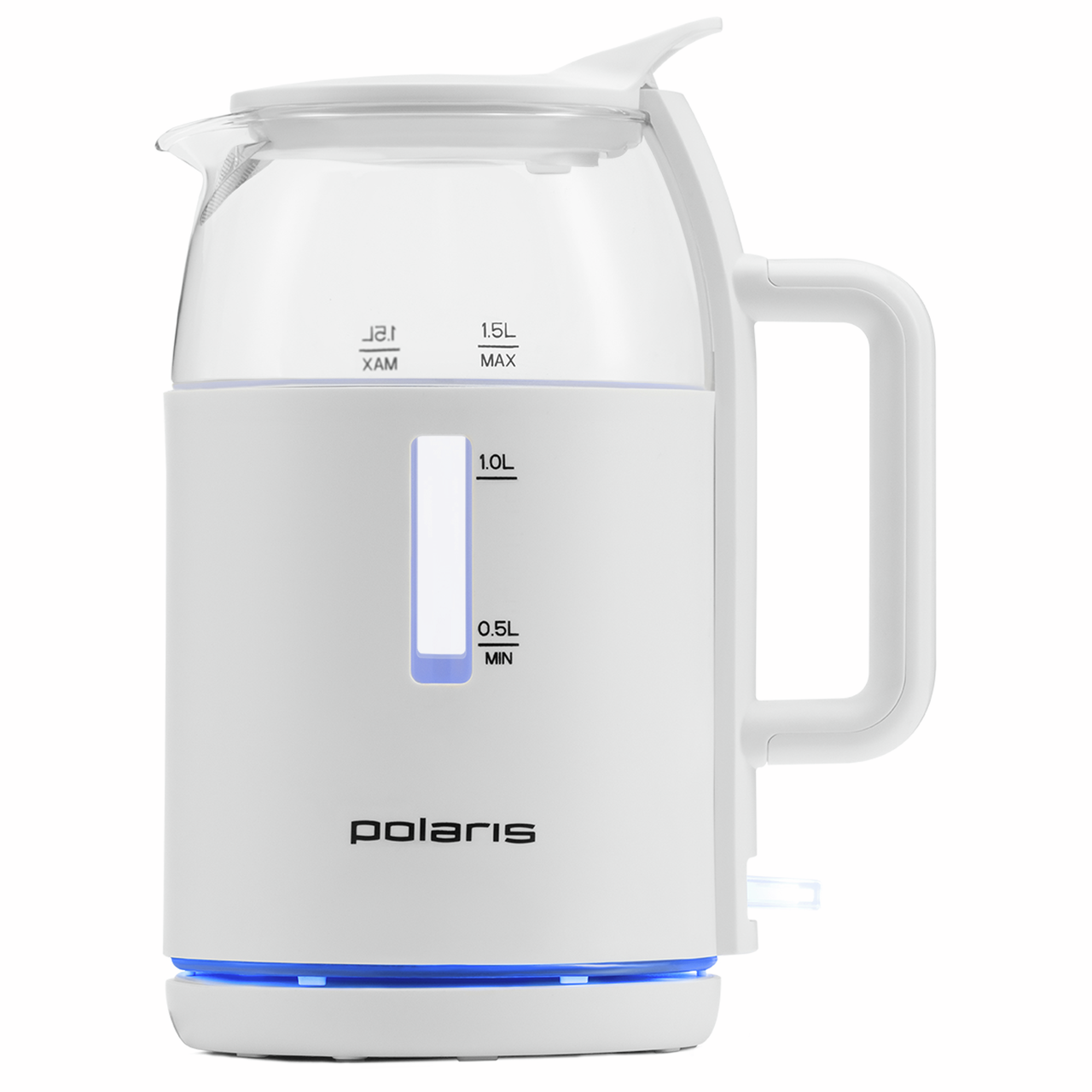 Чайник Polaris Water Way Pro PWK 1545CGL привлекает внимание стильным дизайном. Классическую форму подчеркивает приятная для глаз синяя подсветка, которая включается во время работы. Она одинаково эффектно смотрится при дневном свете и в темноте. Такой чайник станет украшением любой кухни. Его можно поставить на барную стойку в кафе, барах, ресторанах и других заведениях общественного питания. Вода в электрочайнике закипает в считаные мину��ы благодаря мощности в 2200 Вт. В устройстве предусмотрен специальный контроллер Strix. Он существенно продлевает срок эксплуатации изделия. Даже при интенсивном использовании оно прослужит не менее 10 лет. Пользоваться чайником удобно. Для того чтобы налить воду, крышку снимать не требуется. Специальная технология WATERWAY PRO позволяет добавлять воду через отверстие в середине крышки. Изделие соответствует всем требованиям безопасности. Нагрев обеспечивает закрытая спираль. Внутри находится стеклянная колба. Ее производят из огнеупорного стекла, которое устойчиво к воздействию высоких температур. Снаружи для защиты от ожога имеется пластиковый корпус. Он не нагревается и при случайном касании травма исключена. Прибор не включается при отсутствии воды и автоматически выключается при ее закипании, что предотвращает его перегрев или сгорание деталей. Ухаживать за изделием очень просто. Крышка легко снимается, что дает возможность помыть чайник изнутри. В инструкции имеются рекомендации производителя для удаления накипи, которая может появиться при использовании жесткой и нефильтрованной воды.