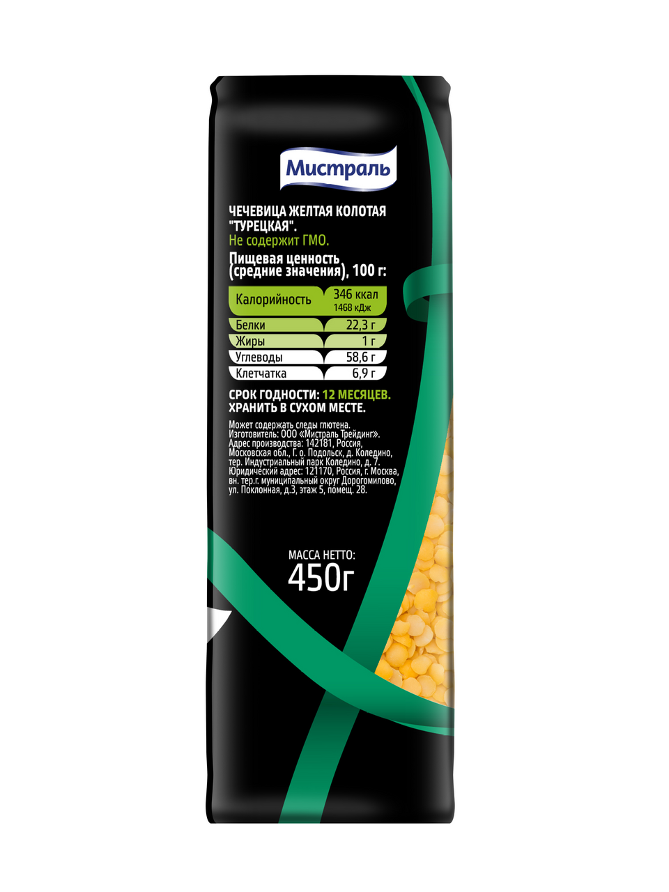 Чечевица Мистраль желтая колотая Турецкая, 450г