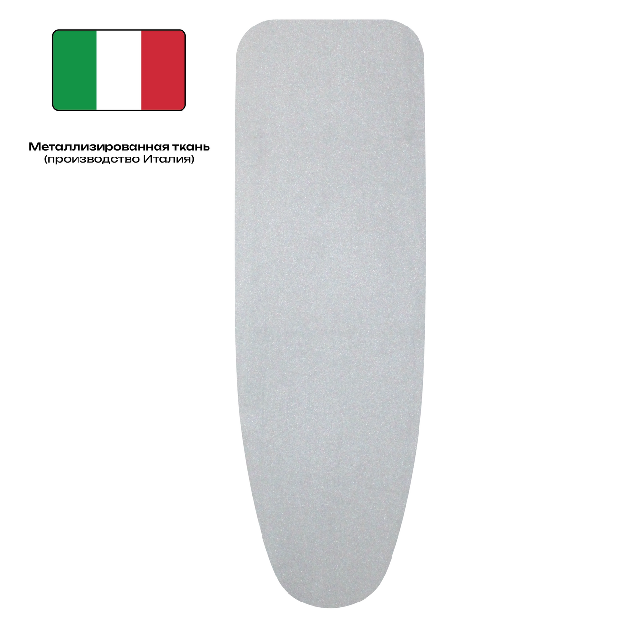 Чехол для гладильной доски. Размер чехла 125*47см. Подходит для гладильных досок с максимальным размером гладильного стола - 120*42см. Помните. Размер чехла должен быть на 5-6см. больше размера рабочей поверхности гладильной доски. Чехол выполнен из металлизированной термостойкой ткани, произведенной в Италии. Хлопковая ткань обрабатывается специальным металлизированной пропиткой. Металлизированный чехол обладаем преимуществами, которые облегчают процесс глажки: - металлизированное покрытие уменьшает впитываемость влаги, отталкивает мелкие частички пыли и грязи - оставляя поверхность чехла чистой и гладкой;- за счет металлизированной пропитки чехол отражает тепло, создавая эффект обратного отпаривания; У металлизированных чехлов повышенный срок службы:- стойкость к механическим повреждениям;- стойкость к растяжениям и заломам;- повышенная теплоизоляция - держит тепловой удар, меньше воздействия на хлопковую основу и внутреннюю подкладку.