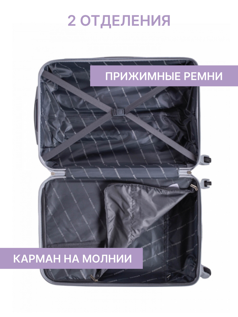 Чемодан Sirocco 956-V-M Quarts сиреневый размера M с контрастными серыми молниями и ручками. Чемодан изготовлен из ABS-пластика – легкого, ударопрочного и долговечного материала. Стильный округлый силуэт и трендовый цвет чемодана 956-V-M Quarts подчеркнет Ваш образ. Оснащен кодовым замком, который сохранит ваши вещи в безопасности на протяжении всего путешествия. Данный чемодан полностью раскрывается на 2 вместительных отделения. Одно из отделений оснащено прижимными ремнями, а другое закрывается на молнию и дополнено сетчатым карманом для мелочей. Чемодан оснащен 4мя колесами, которые поворачиваются на 360 градусов и обеспечивают его комфортное и плавное перемещение по любой поверхности.