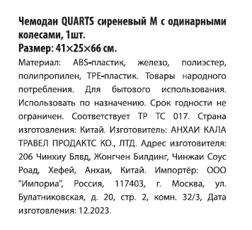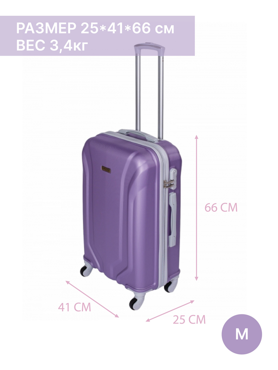 Чемодан Sirocco Quarts 4К ABS сиреневый M, 41 x 25 x 66см