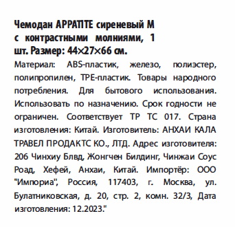 Чемодан Sirocco L917-B-M Appatite сиреневый размера M с контрастными серыми молниями и ручками. Чемодан изготовлен из ABS-пластика – легкого, ударопрочного и долговечного материала. Устойчив к царапинам и загрязнениям, а в случае необходимости его легко очистить, протерев влажной губкой или салфеткой. Чемодан Appatite оснащен кодовым замком, который сохранит ваши вещи в безопасности на протяжении всего путешествия. Данный чемодан полностью раскрывается на 2 вместительных отделения. Одно из отделений оснащено прижимными ремнями, а другое закрывается на молнию и дополнено сетчатым карманом для мелочей. Чемодан оснащен 4мя двойными колесами, которые поворачиваются на 360 градусов и обеспечивают его комфортное и плавное перемещение по любой поверхности.