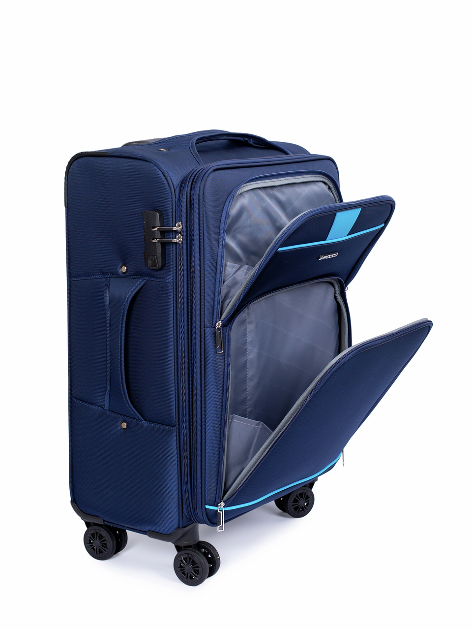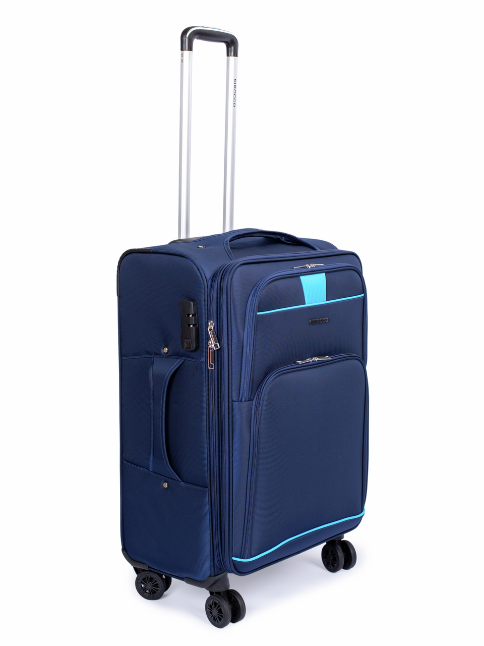 Чемодан Sirocco DQ133-89-M Sapphire синий размера M с голубыми декоративными строчками. Чемодан изготовлен из полиэстера – это износоустойчивый текстильный материал, который легко чистится.Чемодан марки Sirocco DQ133-89-M Sapphire оснащен встроенным кодовым замком, что сохранить вещи в чемодане в безопасности. Основное отделение оснащено прижимными ремнями и дополнено сетчатым карманом для мелочей. У этой модели Sirocco DQ133-89-M Sapphire есть и дополнительная молния для увеличения объема, так что вы без труда поместите в него все необходимые вещи. Чемодан оснащен 4мя двойными колесами, которые поворачиваются на 360 градусов и обеспечивают его комфортное и плавное перемещение по любой поверхности.