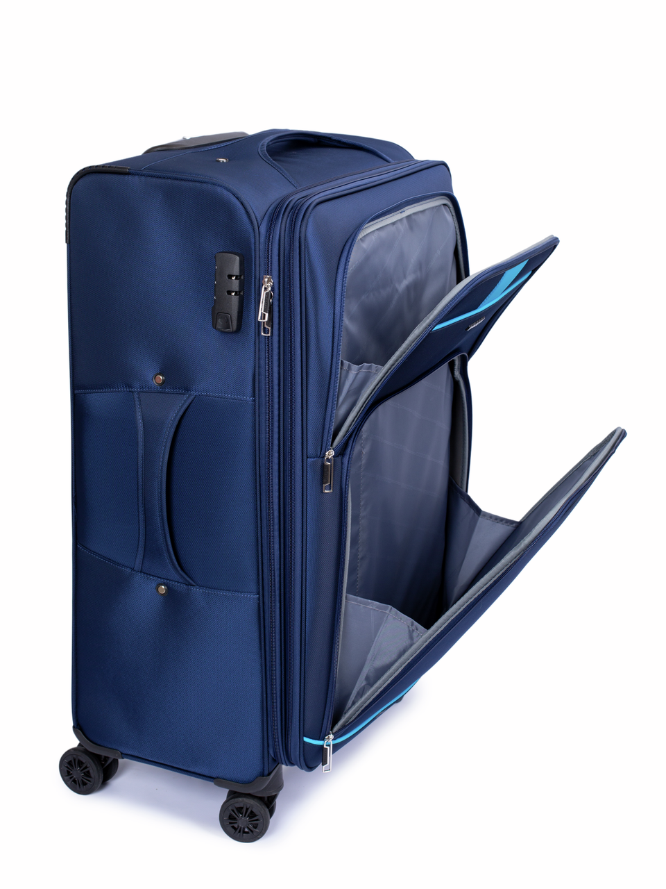 Чемодан Sirocco DQ133-89-L Sapphire синий размера L с голубыми декоративными строчками. Чемодан изготовлен из полиэстера – это износоустойчивый текстильный материал, который легко чистится.Чемодан марки Sirocco DQ133-89-L Sapphire оснащен встроенным кодовым замком, что сохранить вещи в чемодане в безопасности. Основное отделение оснащено прижимными ремнями и дополнено сетчатым карманом для мелочей. У этой модели Sirocco DQ133-89-L Sapphire есть и дополнительная молния для увеличения объема, так что вы без труда поместите в него все необходимые вещи. Чемодан оснащен 4мя двойными колесами, которые поворачиваются на 360 градусов и обеспечивают его комфортное и плавное перемещение по любой поверхности.