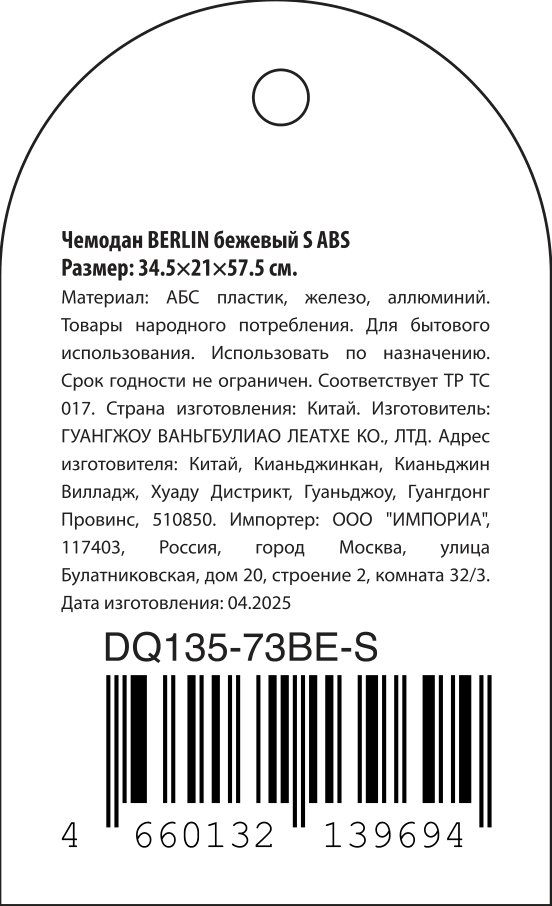 - Комплектация Чемодан - 1 шт.