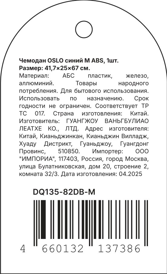 Чемодан Arriva Oslo ABS синий размер M, 41.7 x 25 x 67см