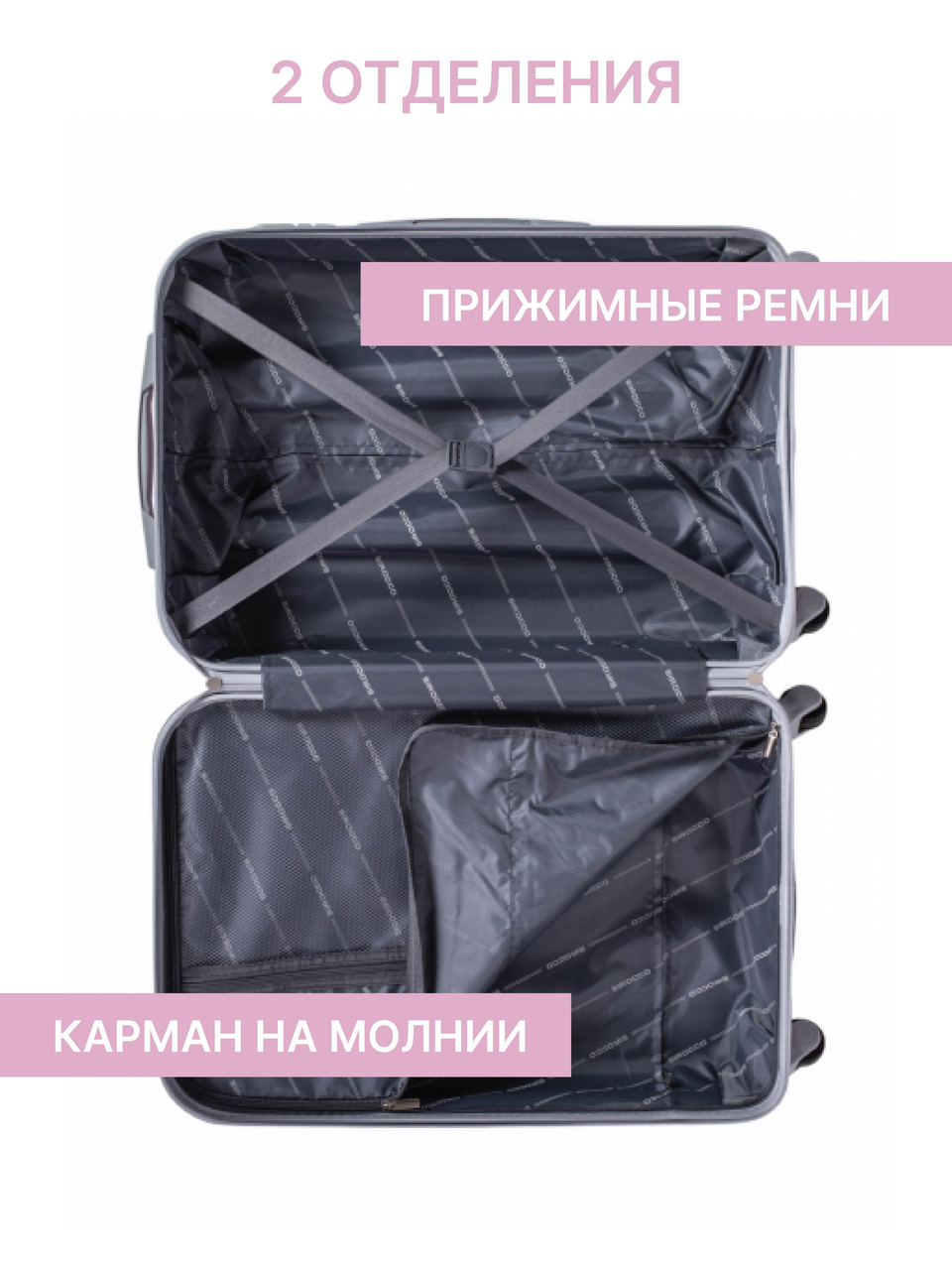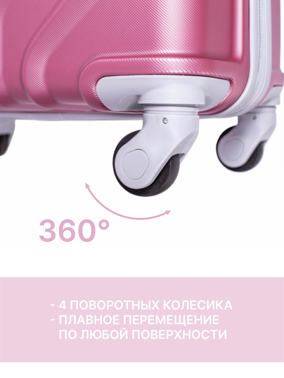 Чемодан Sirocco 956-P-S Quarts розовый размера S с контрастными серыми молниями и ручками. Подходит для ручной клади большинства авиакомпаний. Чемодан изготовлен из ABS-пластика – легкого, ударопрочного и долговечного материала. Стильный округлый силуэт и трендовый цвет чемодана подчеркнет Ваш образ. Оснащен кодовым замком, который сохранит ваши вещи в безопасности на протяжении всего путешествия. Данный чемодан полностью раскрывается на 2 вместительных отделения. Одно из отделений оснащено прижимными ремнями, а другое закрывается на молнию и дополнено сетчатым карманом для мелочей. Чемодан оснащен 4мя колесами, которые поворачиваются на 360 градусов и обеспечивают его комфортное и плавное перемещение по любой поверхности.