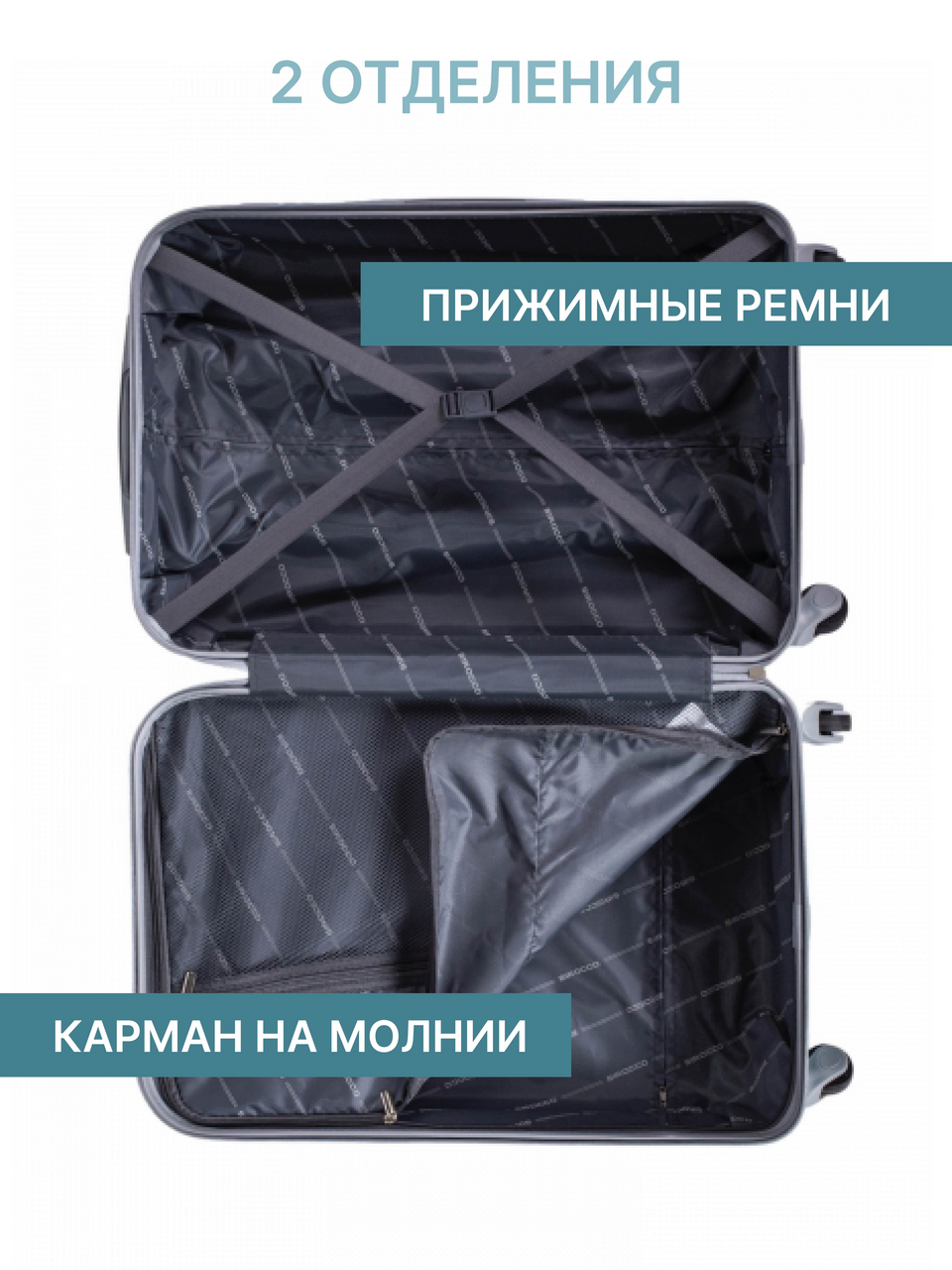 Чемодан Sirocco 956-GR-M Quarts зеленый размера M с контрастными серыми молниями и ручками. Чемодан изготовлен из ABS-пластика – легкого, ударопрочного и долговечного материала. Стильный округлый силуэт и трендовый цвет чемодана подчеркнет Ваш образ. Оснащен кодовым замком, который сохранит ваши вещи в безопасности на протяжении всего путешествия. Данный чемодан полностью раскрывается на 2 вместительных отделения. Одно из отделений оснащено прижимными ремнями, а другое закрывается на молнию и дополнено сетчатым карманом для мелочей. Чемодан оснащен 4мя колесами, которые поворачиваются на 360 градусов и обеспечивают его комфортное и плавное перемещение по любой поверхности.