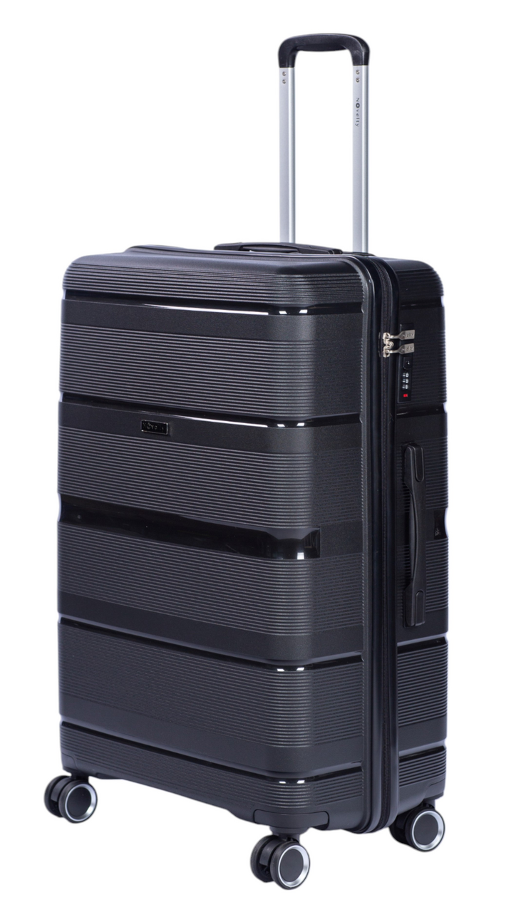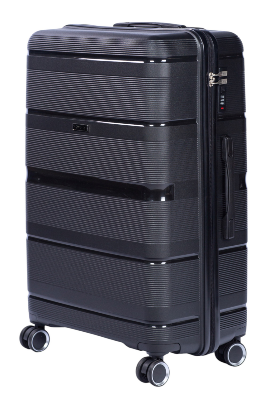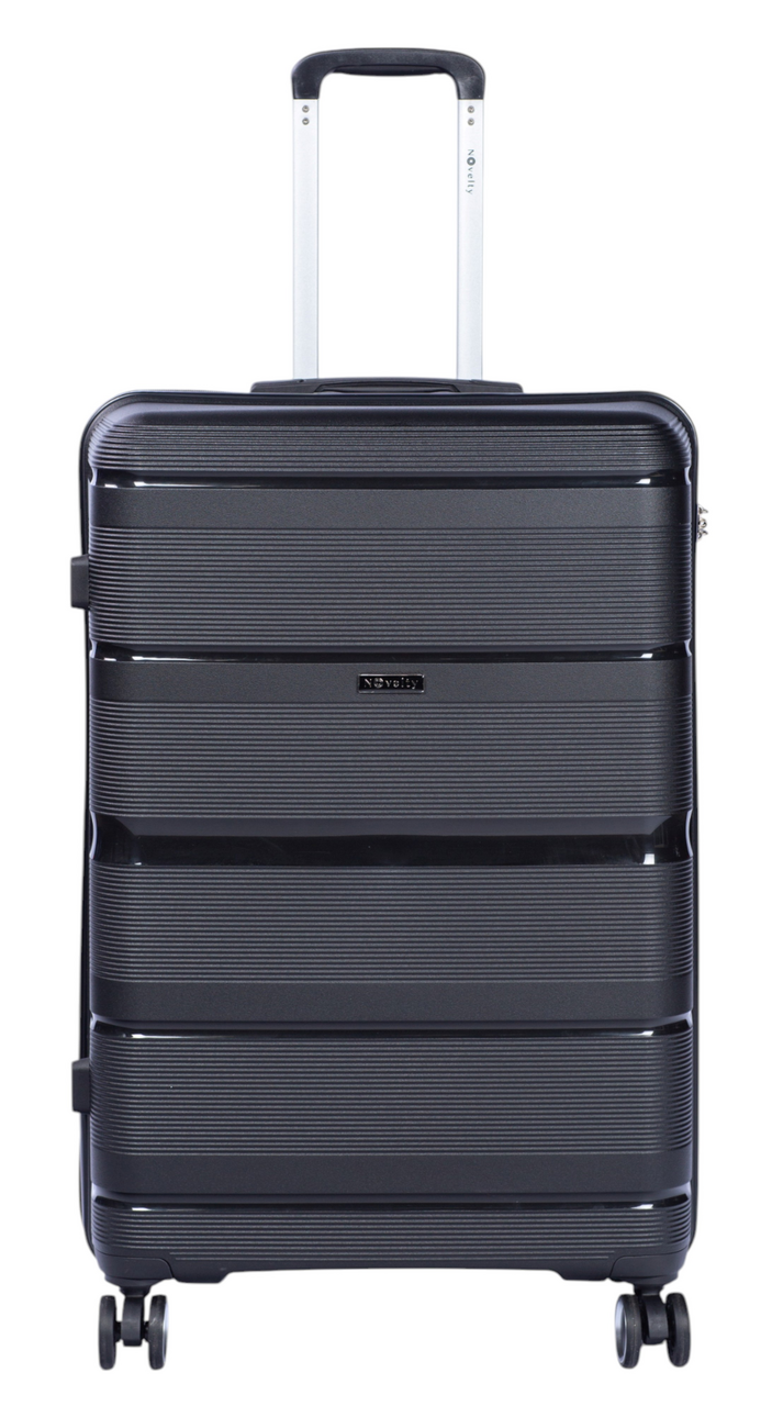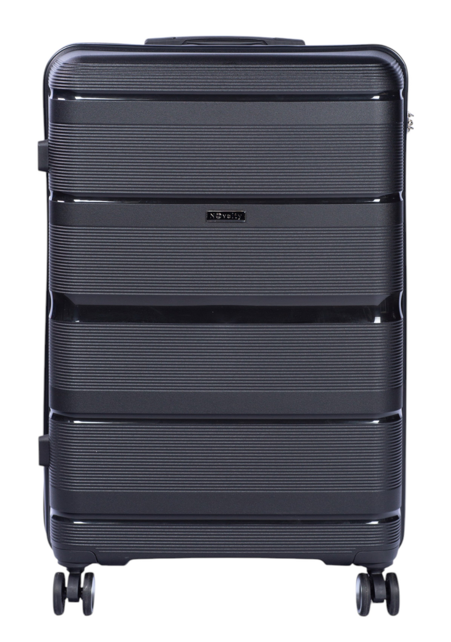 Чемодан Novelty Lines L черный PP c двойными колесами идеально подойдет для путешествий. Этот дорожный аксессуар среднего размера станет надежным спутником в поездках. Он подходит как для женщин, так и для мужчин, сочетая стиль и функциональность. Изготовленный из ударопрочного полипропилена, чемодан обеспечивает высокий уровень защиты вашего багажа от повреждений. Неубиваемый корпус сохранит вещи в целости и сохранности даже при самых нестабильных условиях перевозки. Легкий и удобный чемодан небольшого размера поможет избежать лишней нагрузки во время длительных поездок. Встроенная телескопическая ручка облегчает транспортировку. Простое управление благодаря двойным надежным колесикам с вращением на 360 делает каждую поездку еще более комфортной и беззаботной. Чемодан идеально подходит как для деловых командировок, так и отдыха с семьей или друзьями.
