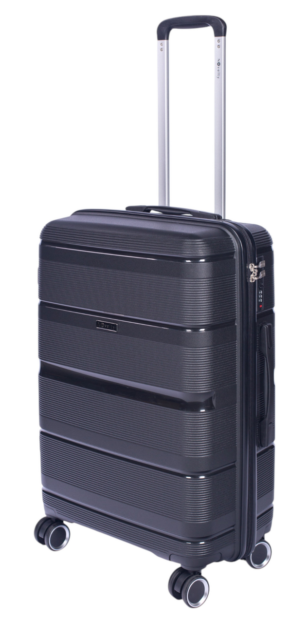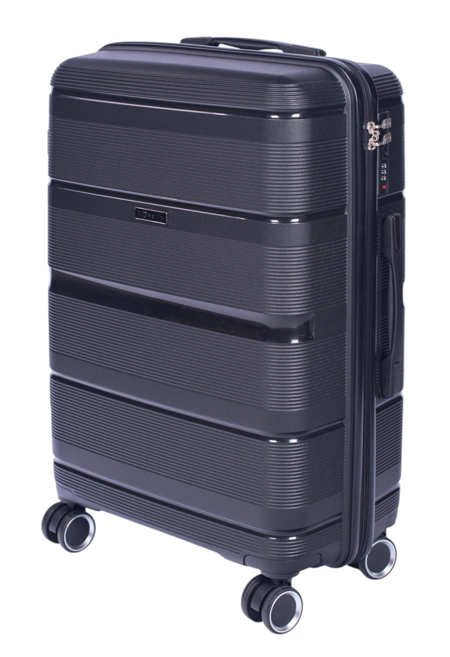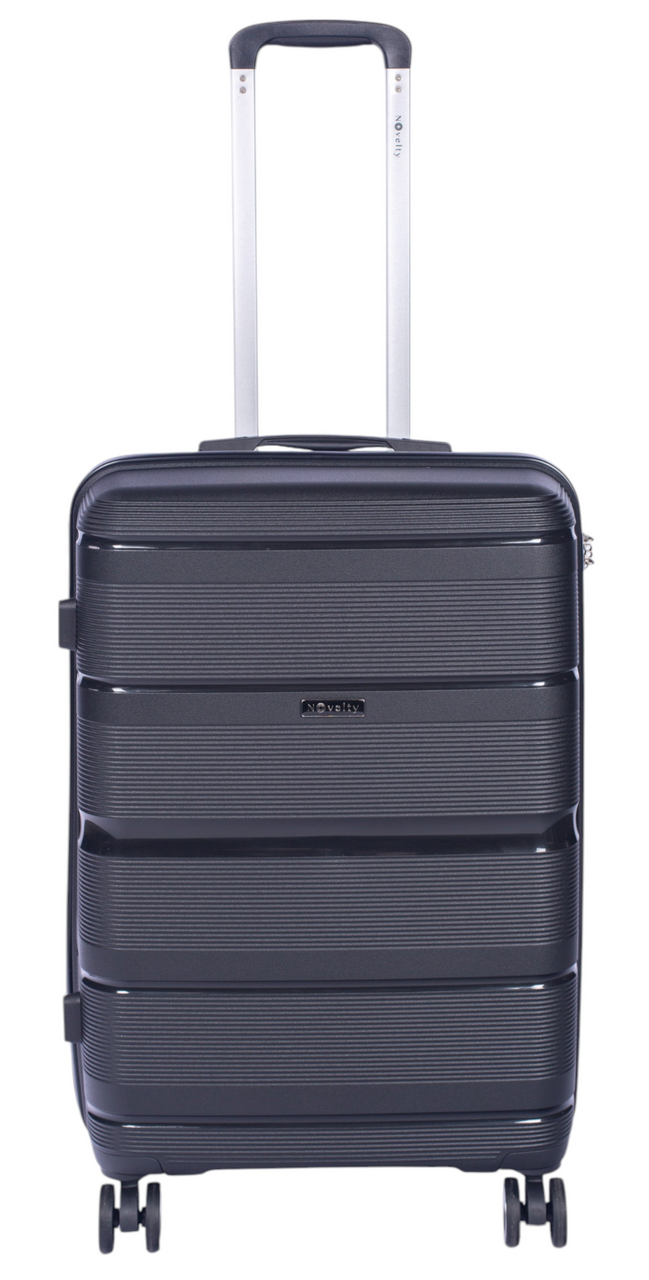 Чемодан Novelty Lines M черный PP c двойными колесами идеально подойдет для путешествий. Этот дорожный аксессуар среднего размера станет надежным спутником в поездках. Он подходит как для женщин, так и для мужчин, сочетая стиль и функциональность. Изготовленный из ударопрочного полипропилена, чемодан обеспечивает высокий уровень защиты вашего багажа от повреждений. Неубиваемый корпус сохранит вещи в целости и сохранности даже при самых нестабильных условиях перевозки. Легкий и удобный чемодан небольшого размера поможет избежать лишней нагрузки во время длительных поездок. Встроенная телескопическая ручка облегчает транспортировку. Простое управление благодаря двойным надежным колесикам с вращением на 360 делает каждую поездку еще более комфортной и беззаботной. Чемодан идеально подходит как для деловых командировок, так и отдыха с семьей или друзьями.