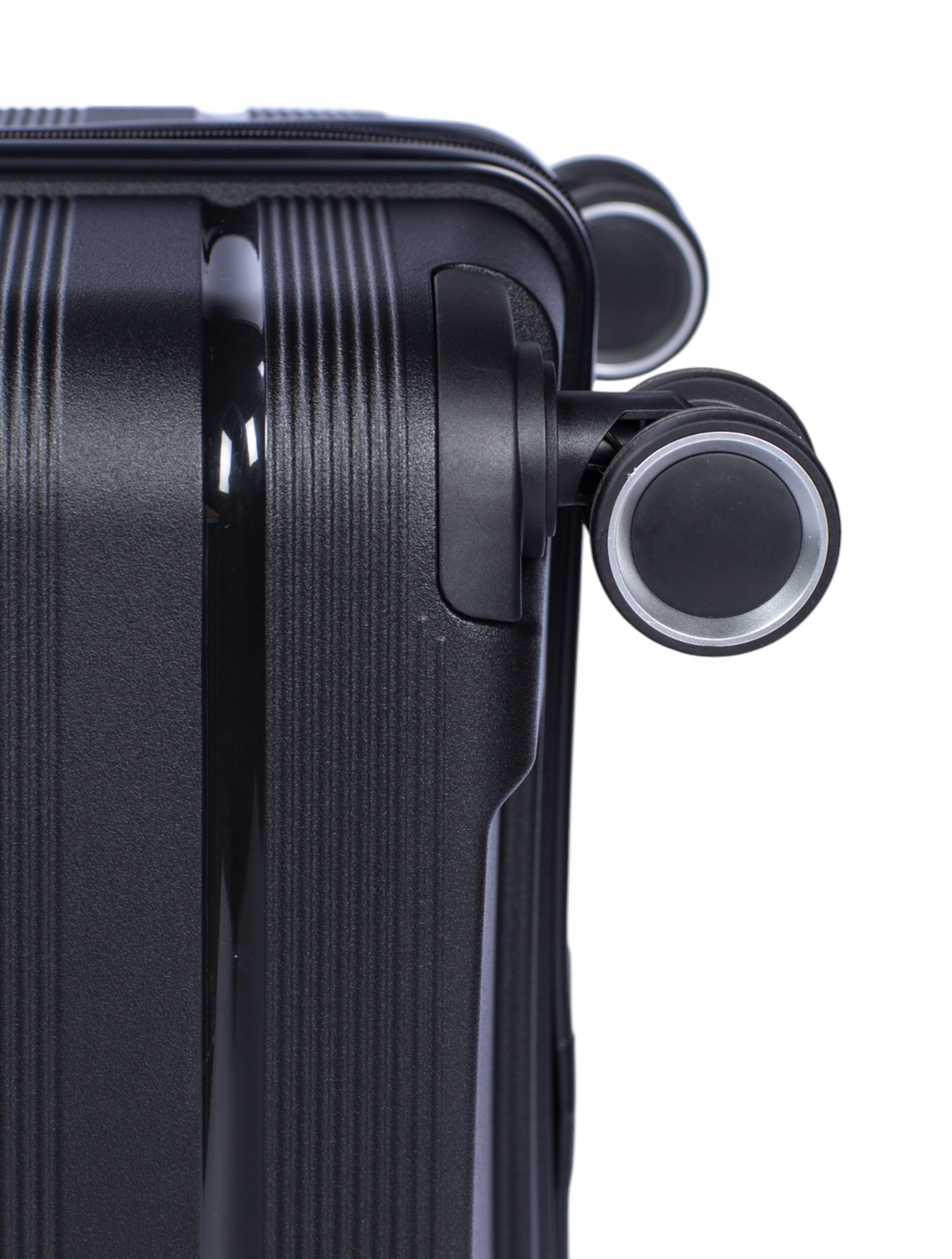 Чемодан Novelty Lines S черный PP c двойными колесами идеально подойдет для путешествий. Этот дорожный аксессуар среднего размера станет надежным спутником в поездках. Он подходит как для женщин, так и для мужчин, сочетая стиль и функциональность. Изготовленный из ударопрочного полипропилена, чемодан обеспечивает высокий уровень защиты вашего багажа от повреждений. Неубиваемый корпус сохранит вещи в целости и сохранности даже при самых нестабильных условиях перевозки. Легкий и удобный чемодан небольшого размера поможет избежать лишней нагрузки во время длительных поездок. Встроенная телескопическая ручка облегчает транспортировку. Простое управление благодаря двойным надежным колесикам с вращением на 360 делает каждую поездку еще более комфортной и беззаботной. Чемодан идеально подходит как для деловых командировок, так и отдыха с семьей или друзьями.