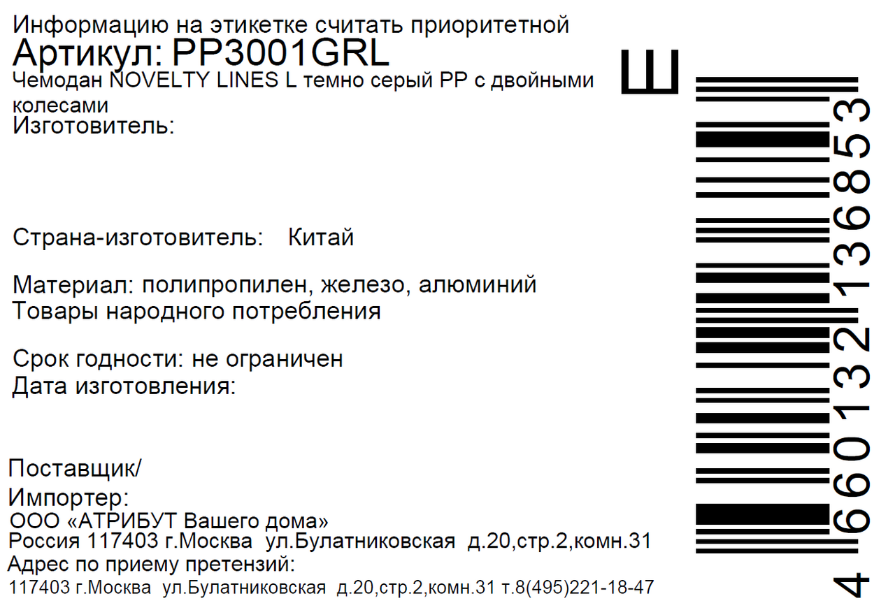 - Комплектация Чемодан - 1 шт.