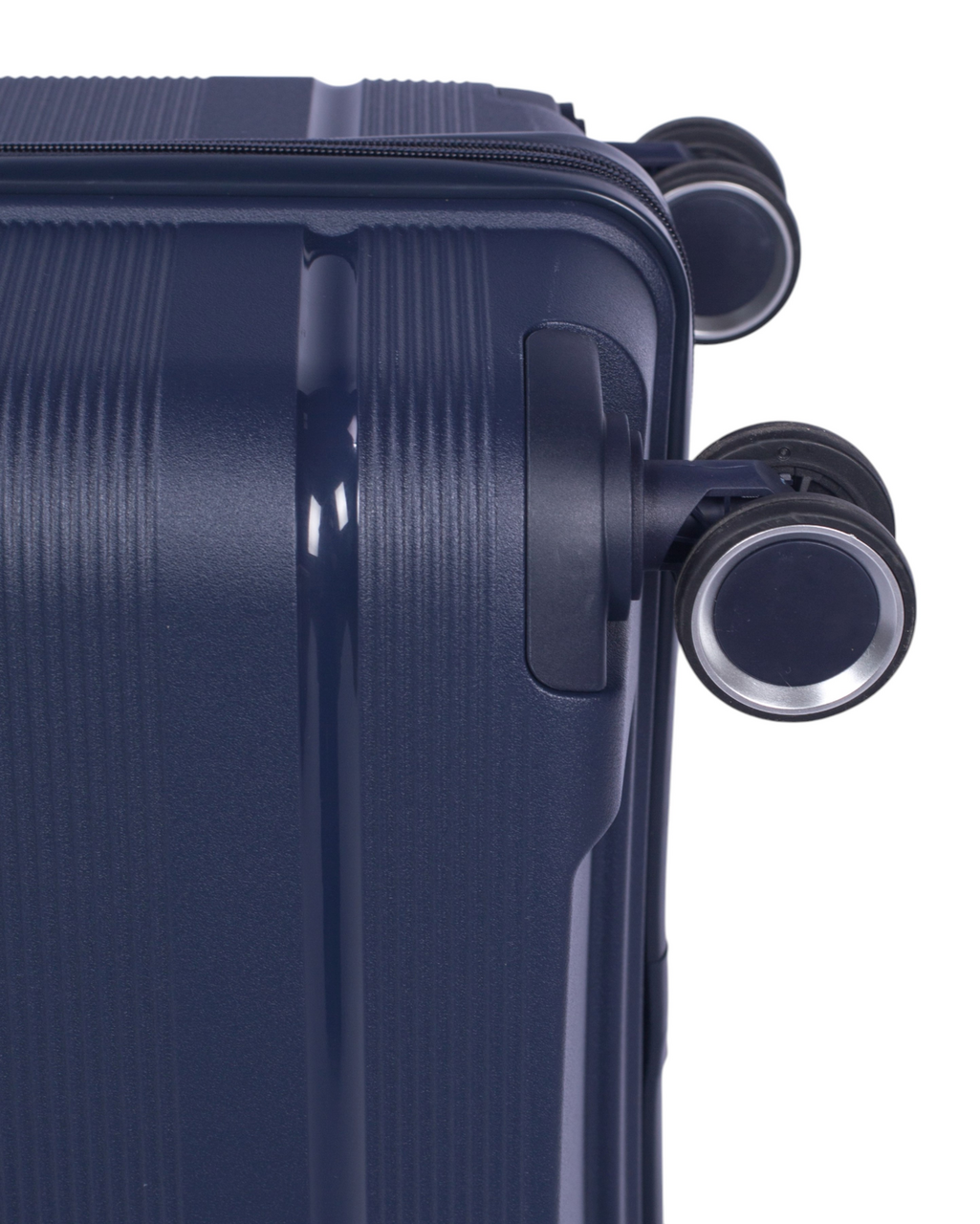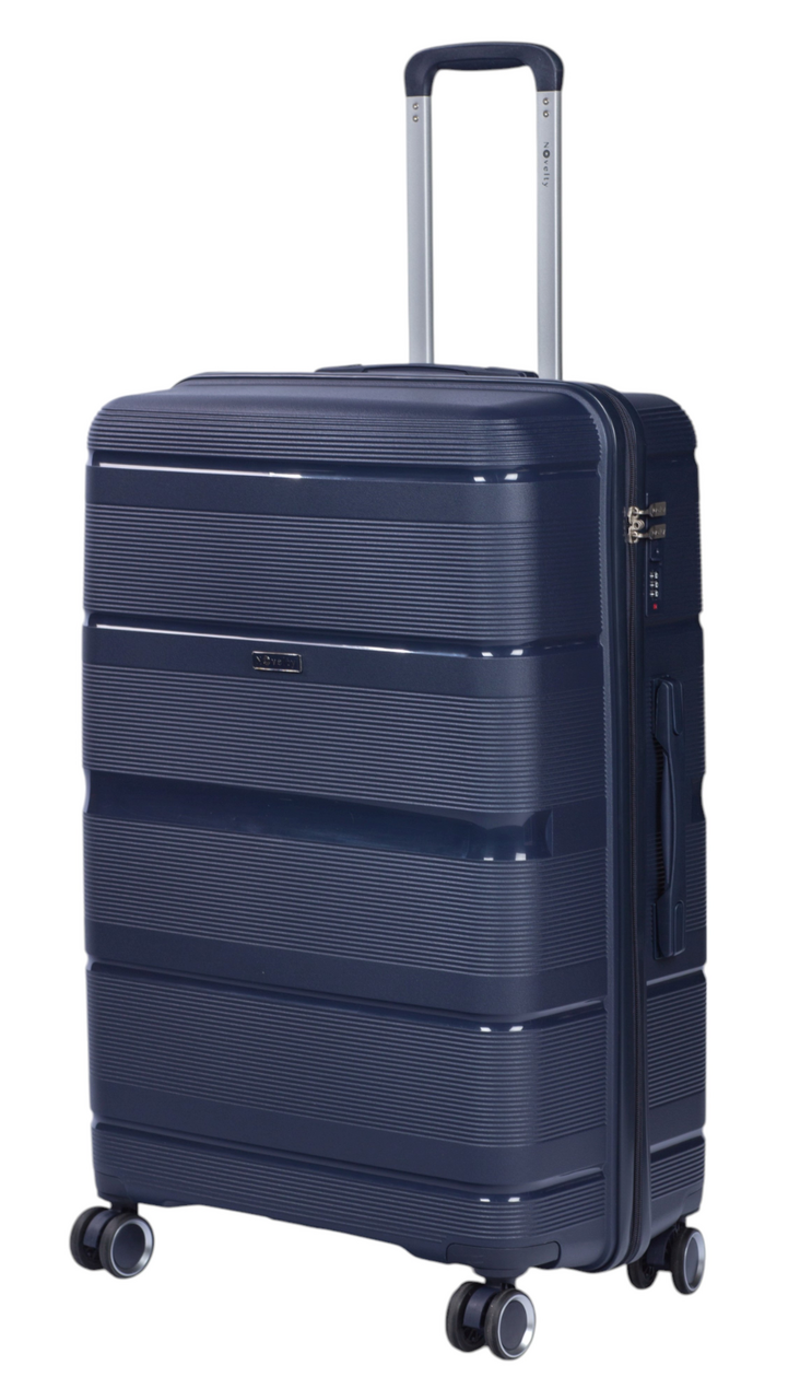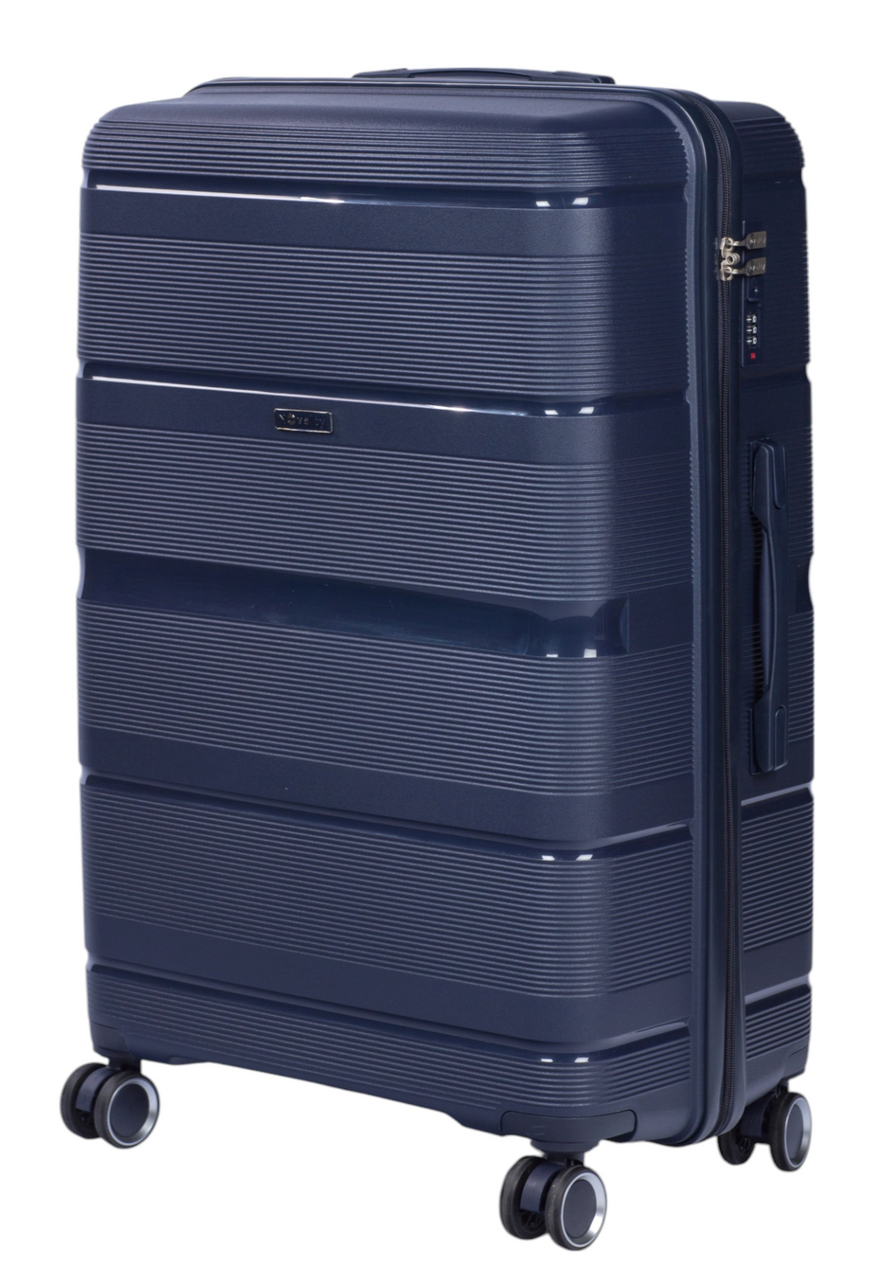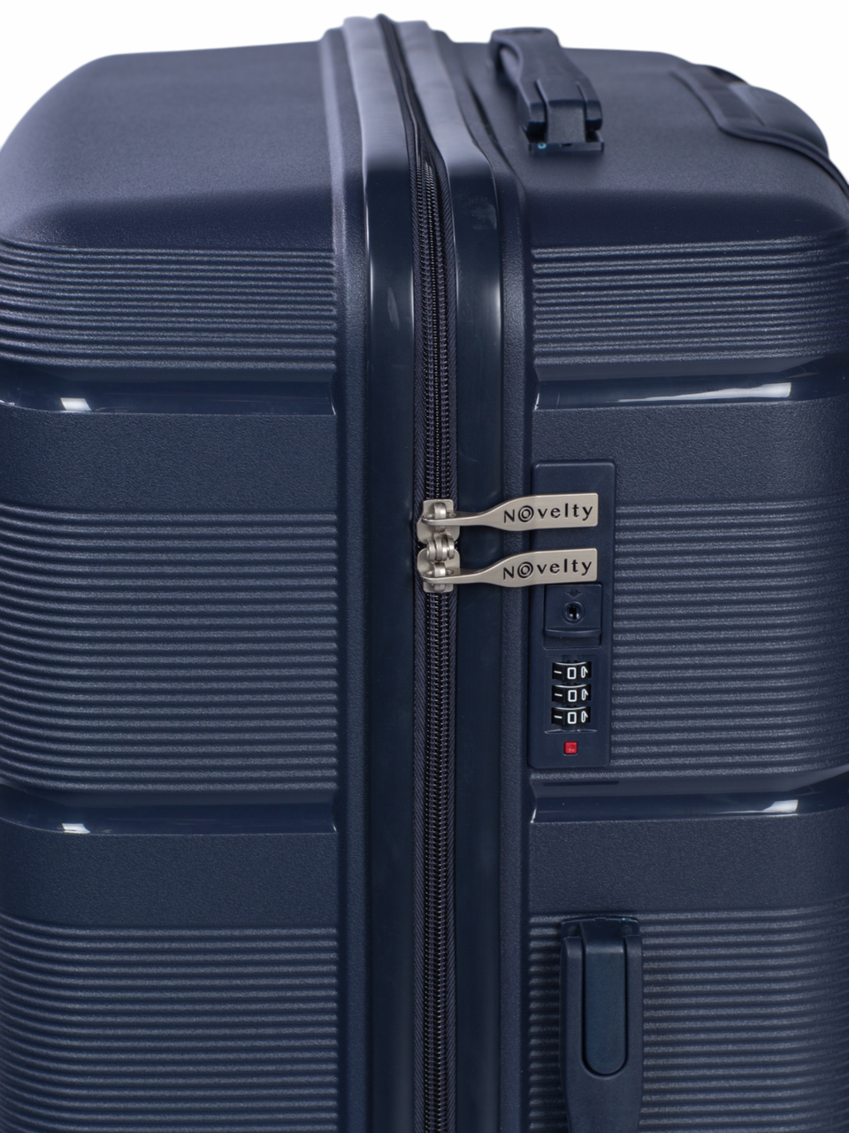 Чемодан Novelty Lines L темно-синий PP c двойными колесами идеально подойдет для путешествий. Этот дорожный аксессуар среднего размера станет надежным спутником в поездках. Он подходит как для женщин, так и для мужчин, сочетая стиль и функциональность. Изготовленный из ударопрочного полипропилена, чемодан обеспечивает высокий уровень защиты вашего багажа от повреждений. Неубиваемый корпус сохранит вещи в целости и сохранности даже при самых нестабильных условиях перевозки. Легкий и удобный чемодан небольшого размера поможет избежать лишней нагрузки во время длительных поездок. Встроенная телескопическая ручка облегчает транспортировку. Простое управление благодаря двойным надежным колесикам с вращением на 360 делает каждую поездку еще более комфортной и беззаботной. Чемодан идеально подходит как для деловых командировок, так и отдыха с семьей или друзьями.