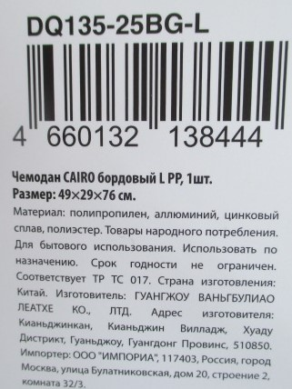 - Размер чемодана L