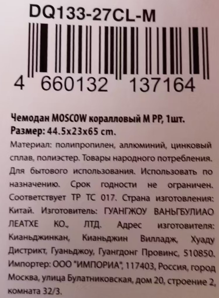 Чемодан Sirocco Moscow коралловый с полосками размер M, 68 x 44 x 26см