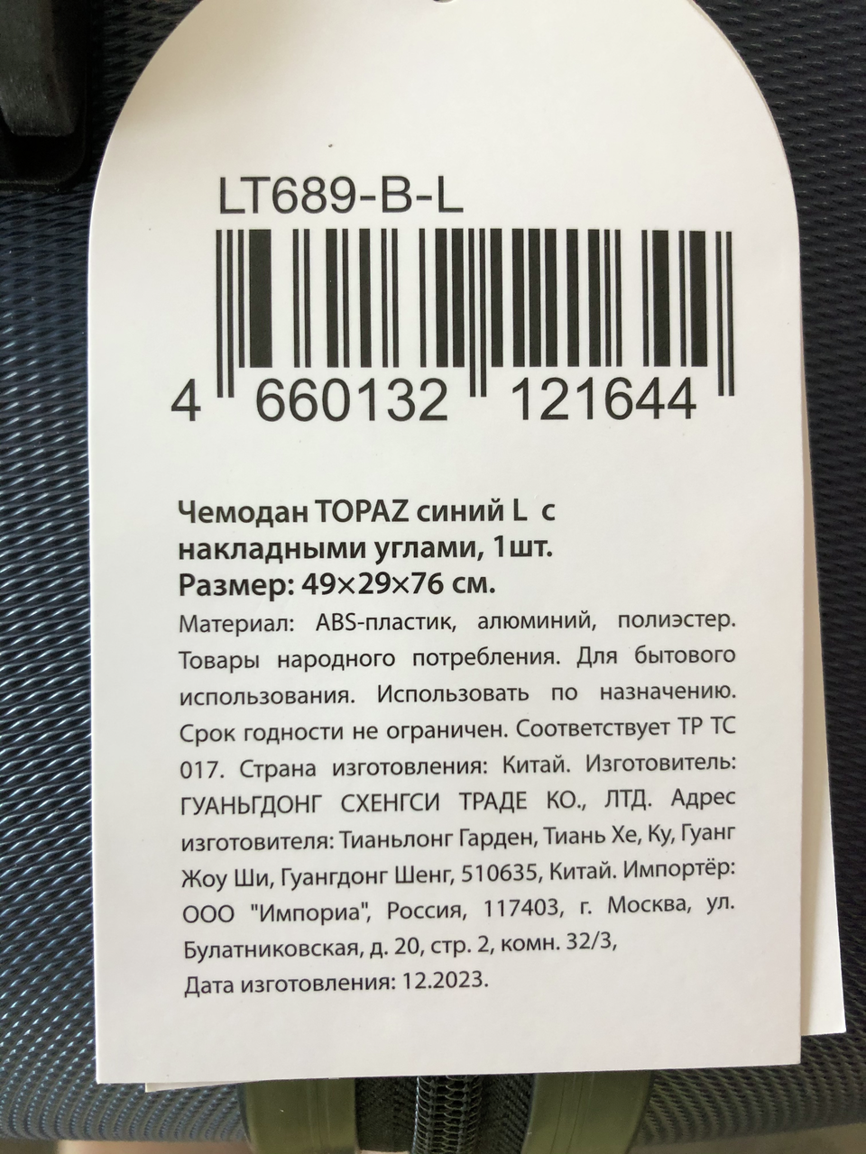 Чемодан Sirocco Topaz ABS с накладными углами синий, размер L