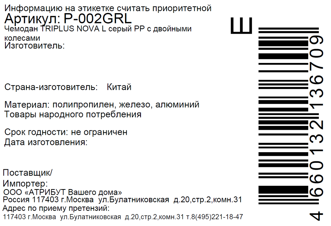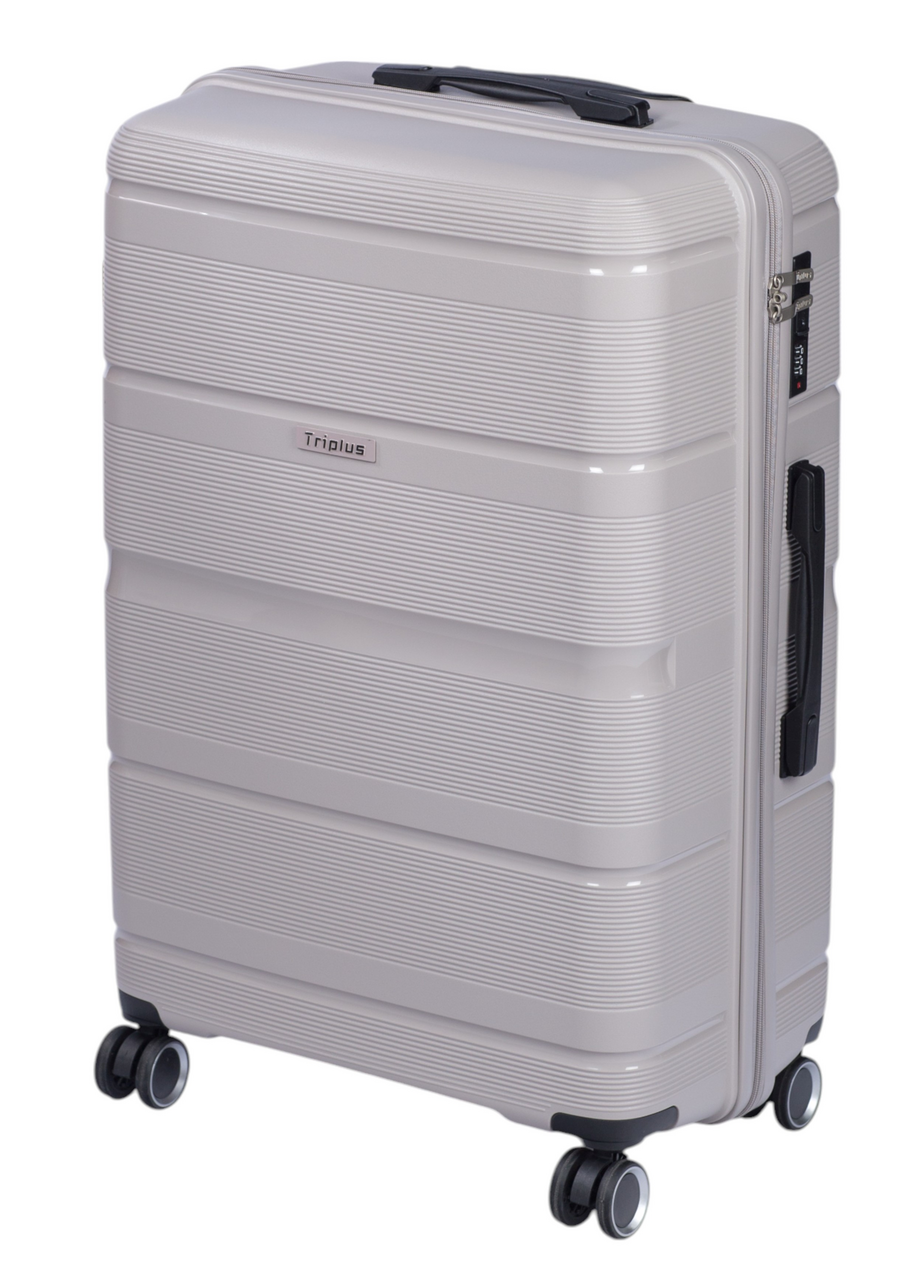 Чемодан Triplus Nova L серый PP c двойными колесами идеально подойдет для путешествий. Этот дорожный аксессуар среднего размера станет надежным спутником в поездках. Он подходит как для женщин, так и для мужчин, сочетая стиль и функциональность. Изготовленный из ударопрочного полипропилена, чемодан обеспечивает высокий уровень защиты вашего багажа от повреждений. Неубиваемый корпус сохранит вещи в целости и сохранности даже при самых нестабильных условиях перевозки. Легкий и удобный чемодан небольшого размера поможет избежать лишней нагрузки во время длительных поездок. Встроенная телескопическая ручка облегчает транспортировку. Простое управление благодаря двойным надежным колесикам с вращением на 360 делает каждую поездку еще более комфортной и беззаботной. Чемодан идеально подходит как для деловых командировок, так и отдыха с семьей или друзьями.