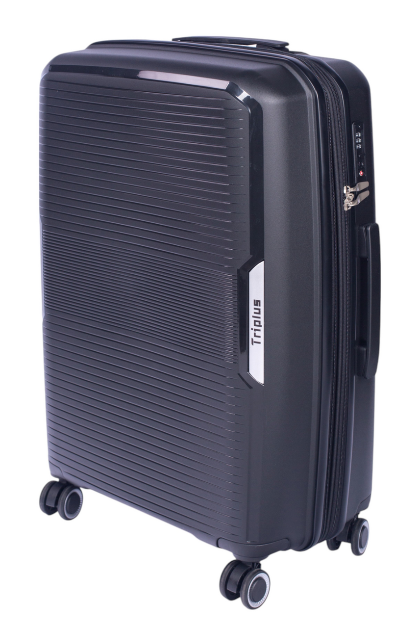 Чемодан Triplus Rock M черный PP c двойными колесами идеально подойдет для путешествий. Этот дорожный аксессуар среднего размера станет надежным спутником в поездках. Он подходит как для женщин, так и для мужчин, сочетая стиль и функциональность. Изготовленный из ударопрочного полипропилена, чемодан обеспечивает высокий уровень защиты вашего багажа от повреждений. Неубиваемый корпус сохранит вещи в целости и сохранности даже при самых нестабильных условиях перевозки. Легкий и удобный чемодан небольшого размера поможет избежать лишней нагрузки во время длительных поездок. Встроенная телескопическая ручка облегчает транспортировку. Простое управление благодаря двойным надежным колесикам с вращением на 360 делает каждую поездку еще более комфортной и беззаботной. Чемодан идеально подходит как для деловых командировок, так и отдыха с семьей или друзьями.