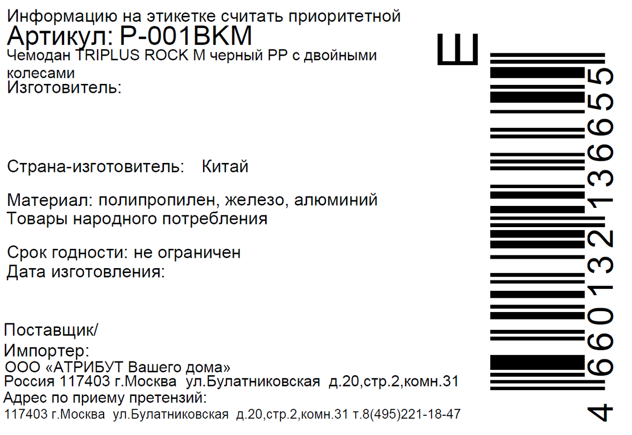 - Комплектация Чемодан - 1 шт.