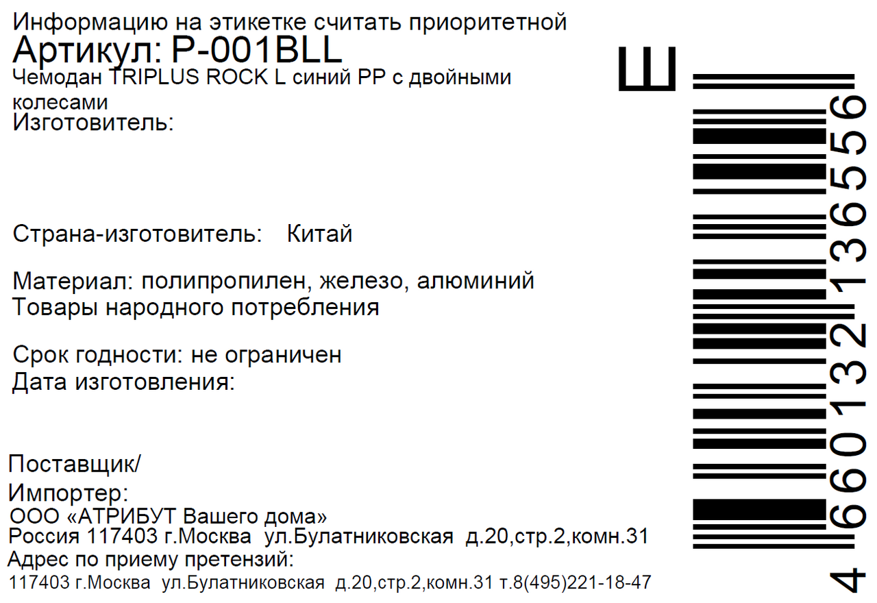 Чемодан Triplus Rock L синий PP c двойными колесами идеально подойдет для путешествий. Этот дорожный аксессуар среднего размера станет надежным спутником в поездках. Он подходит как для женщин, так и для мужчин, сочетая стиль и функциональность. Изготовленный из ударопрочного полипропилена, чемодан обеспечивает высокий уровень защиты вашего багажа от повреждений. Неубиваемый корпус сохранит вещи в целости и сохранности даже при самых нестабильных условиях перевозки. Легкий и удобный чемодан небольшого размера поможет избежать лишней нагрузки во время длительных поездок. Встроенная телескопическая ручка облегчает транспортировку. Простое управление благодаря двойным надежным колесикам с вращением на 360 делает каждую поездку еще более комфортной и беззаботной. Чемодан идеально подходит как для деловых командировок, так и отдыха с семьей или друзьями.