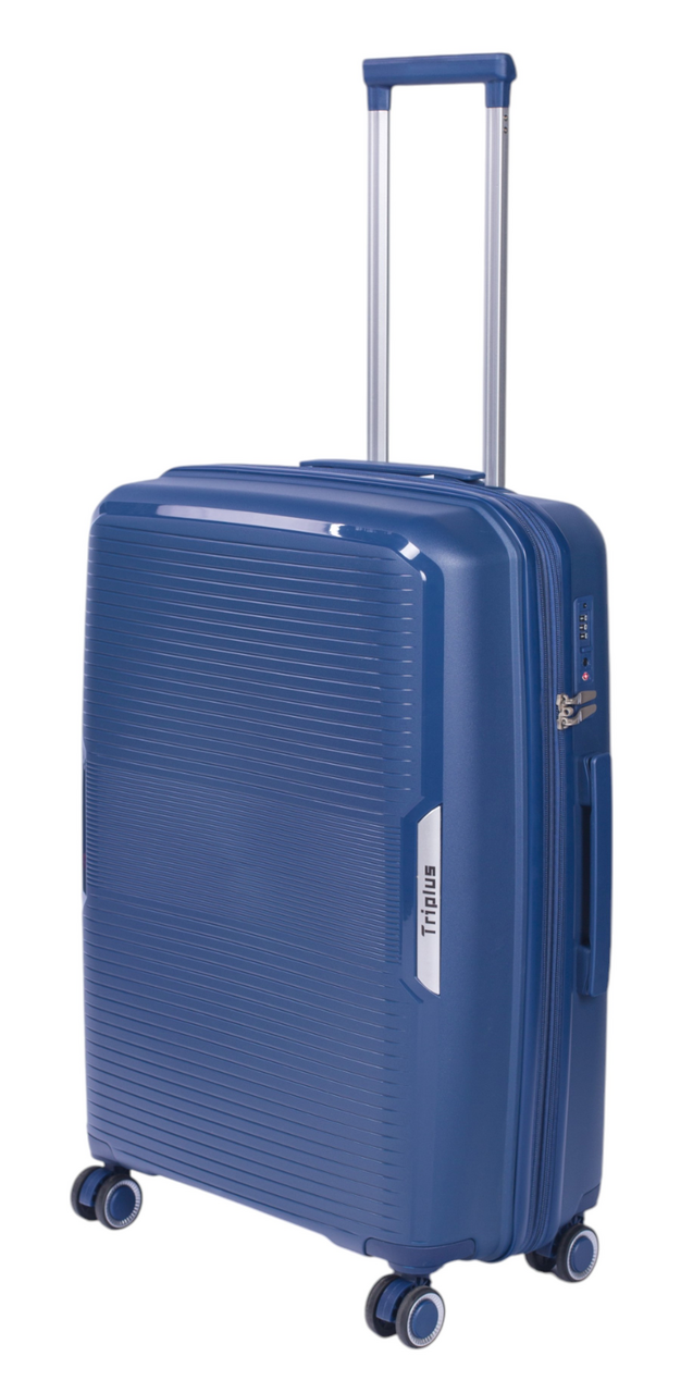 Чемодан Triplus Rock M синий PP c двойными колесами идеально подойдет для путешествий. Этот дорожный аксессуар среднего размера станет надежным спутником в поездках. Он подходит как для женщин, так и для мужчин, сочетая стиль и функциональность. Изготовленный из ударопрочного полипропилена, чемодан обеспечивает высокий уровень защиты вашего багажа от повреждений. Неубиваемый корпус сохранит вещи в целости и сохранности даже при самых нестабильных условиях перевозки. Легкий и удобный чемодан небольшого размера поможет избежать лишней нагрузки во время длительных поездок. Встроенная телескопическая ручка облегчает транспортировку. Простое управление благодаря двойным надежным колесикам с вращением на 360 делает каждую поездку еще более комфортной и беззаботной. Чемодан идеально подходит как для деловых командировок, так и отдыха с семьей или друзьями.