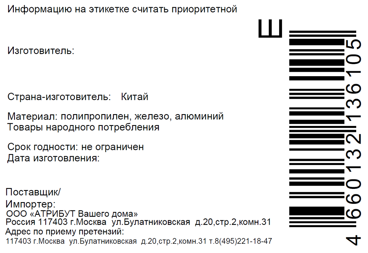 - Материал Металл; Полипропилен