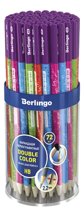 Карандаш чернографитный Berlingo Double Color HB трехгранный, 72 шт