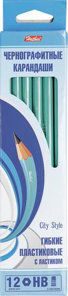 Hatber Карандаш чернографитный гибкий пластиковый с ластиком HB 12 шт
