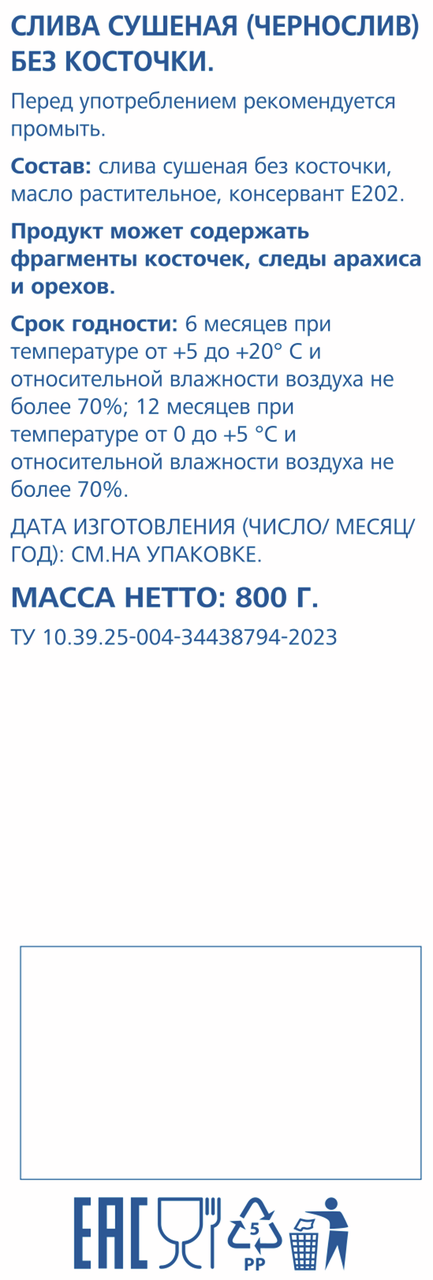 Чернослив сушеный aro без косточки, 800 г – распространенный и вкусный сухофрукт. Применяется в кулинарии, косметологии и медицине. В состав продукта входит огромное количество полезных веществ, в том числе витаминов, микроэлементов. За счет компонентов, входящих в состав, помогает нормализовать работу желудка, сердца и сосудов, повышает иммунитет, стимулирует зрение. За счет уникального способа изготовления полн��стью сохраняет все полезные элементы, не теряя их в процессе сушки. Продукт можно употреблять в таком виде, готовить из него компоты, кисели, начинки, фаршировать курицу, рыбу, мясо.