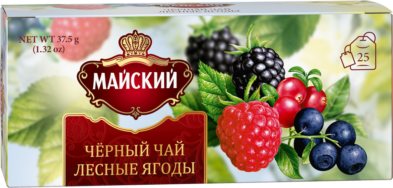 Чай Майский Лесные ягоды черный, 25 пакетиков