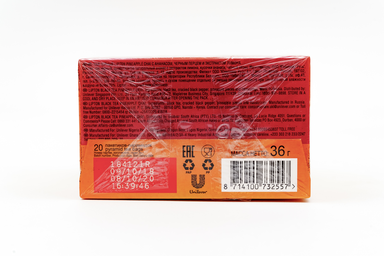 Чай черный в пирамидках LIPTON Pineapple Chai с ананасом, черным перцем и экстрактом лимонада, 20 п х 1,8 г