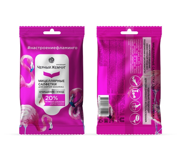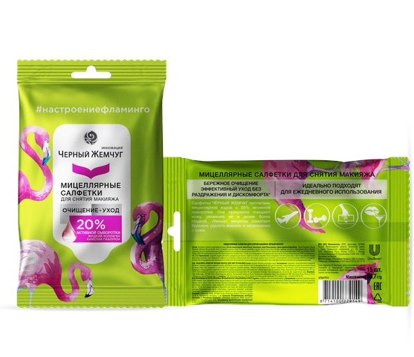 Салфетки Черный Жемчуг мицеллярные для снятия макияжа, 15листов