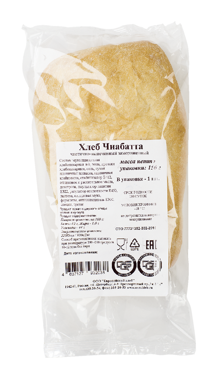 Хлеб Еврохлеб Чиабатта замороженная, 150г