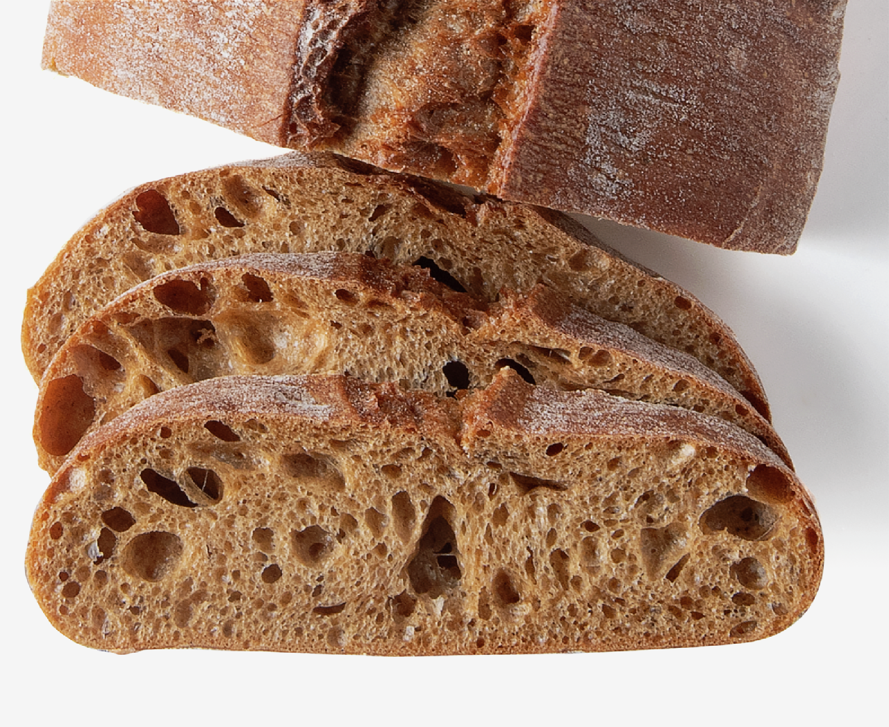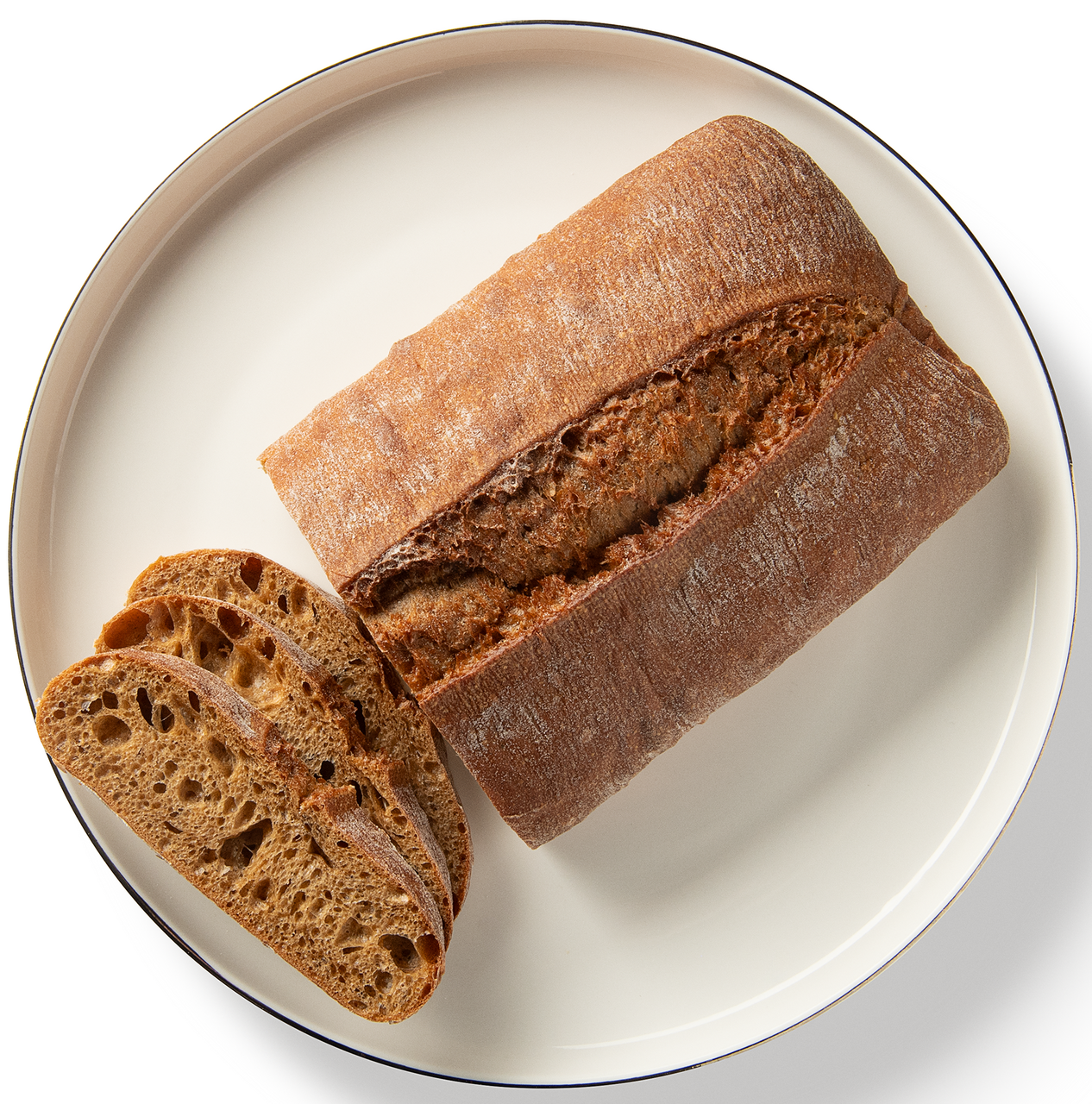 Невероятно мягкий итальянский пшеничный хлеб Чиабатта темная - душистая, с оригинальным вкусом за счет добавления ячменного солода. Очень мягкий, воздушный мякиш с крупными порами, изящный продольный надрез, хрустящая рваная корочка, присыпанная мукой и длительная свежесть. Чиабатта выпечена в соответствии с классическими рецептами итальянской кухни: без консервантов, улучшителей и ароматизаторов с добавлением ячменного солода.