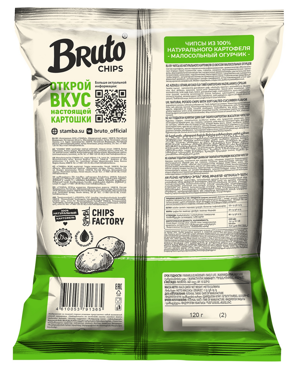 Чипсы Bruto малосольные огурчики, 120г