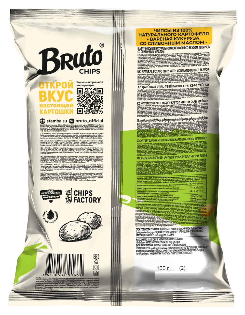 Чипсы Bruto вареная кукуруза и сливочное масло, 100г