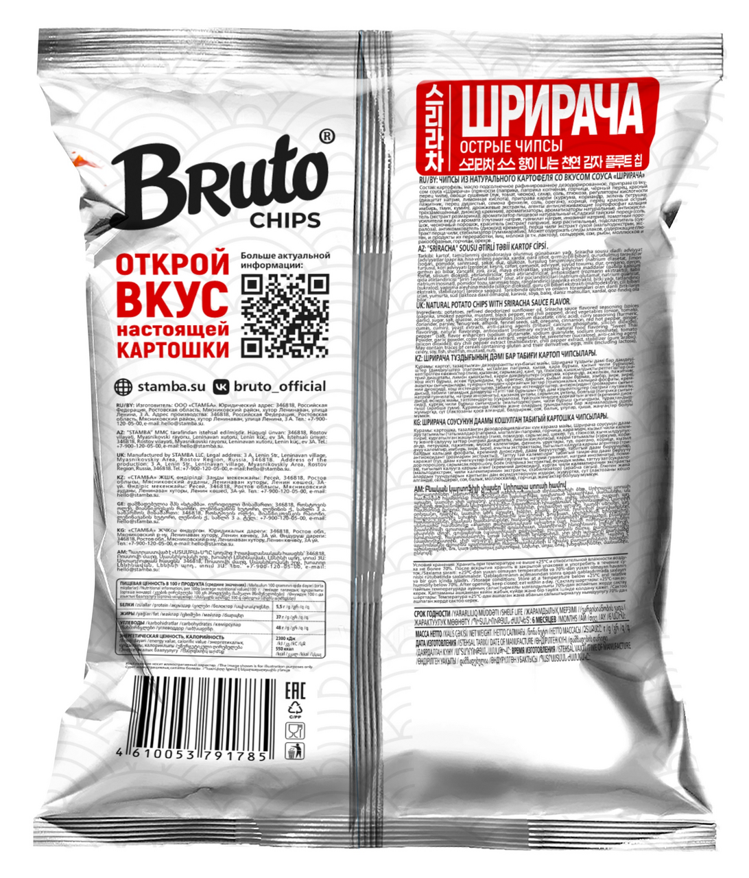 Чипсы из натурального картофеля со вкусом Шрирача. Для любителей азиатских вкусов. И тех, кто любит поострее.