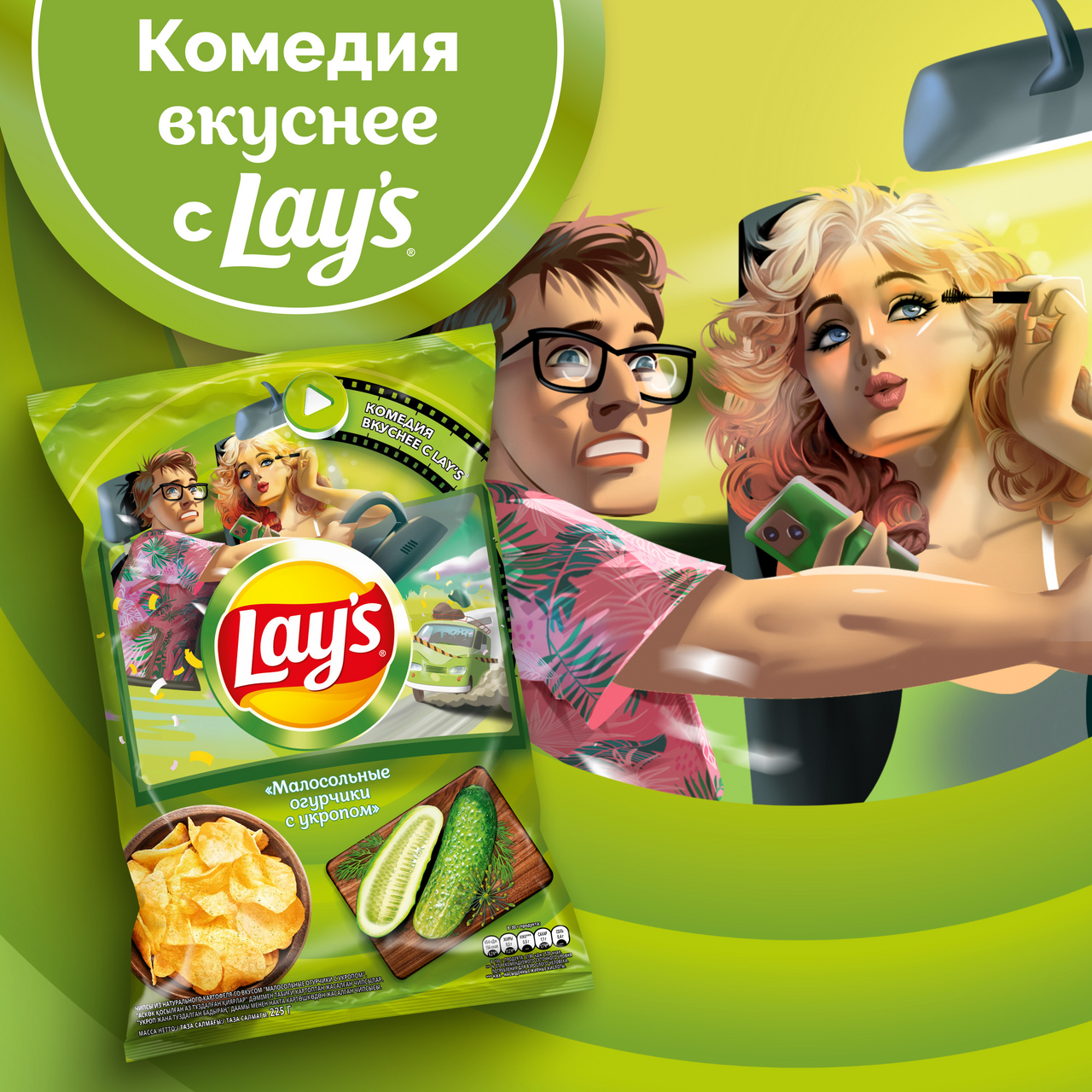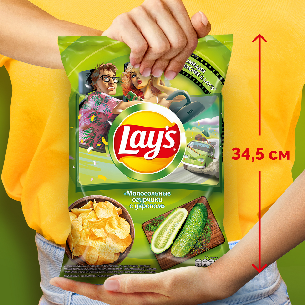 Lay's - чипсы, каждая пачка которых изготовлена из специально отобранного картофеля и соответствует самым высоким стандартам качества. Хрустящие и легкие на вкус картофельные чипсы Lay's были созданы, чтобы вызвать улыбку на лице каждого человека, поэтому ими так приятно делиться с лучшими друзьями. Чипсы Lay's, несомненно, скрасят ваш день. Это хрустящий снек со вкусом малосольных огурчиков и укропа. Изготовлены из картофеля с добавлением специй и пряностей. Подходят для перекуса и просмотра фильмов, а также могут послужить дополнением к пиву. Благодаря своему вкусу могут разнообразить любую закусочную тарелку.