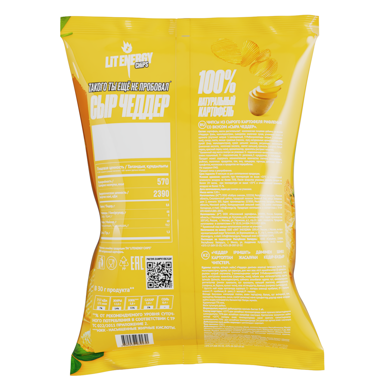 Чипсы Lit Energy чеддер, 120г