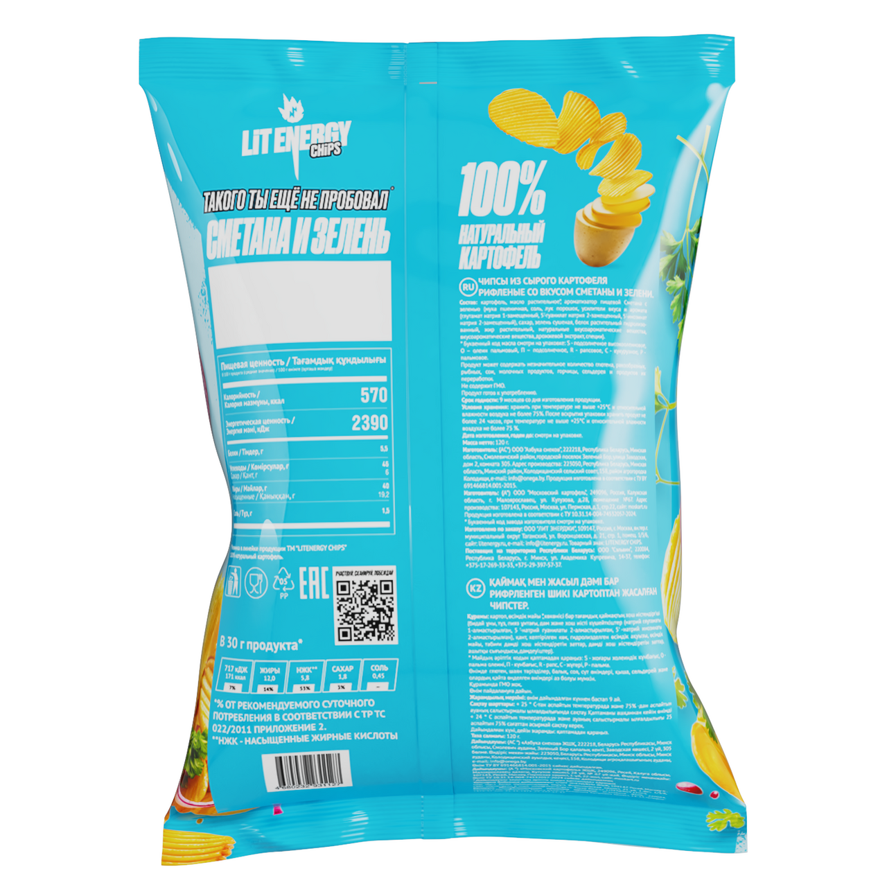 Чипсы Lit Energy сметана и зелень, 120г