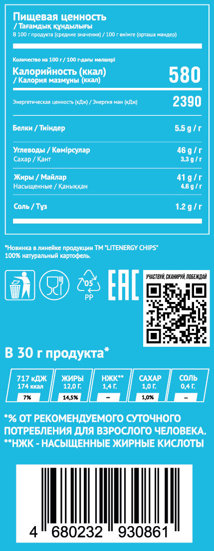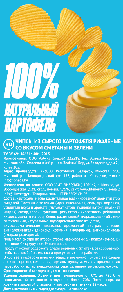 Картофельные чипсы Lit Energy со вкусом сметаны и зелени - идеальный выбор для тех, кто ценит насыщенные и яркие вкусовые ощущения. Каждый кусочек этих хрустящих чипсов пропитан аппетитным ароматом свежей сметаны и легкой зелени, что создает неповторимое сочетание, способное удовлетворить даже самых взыскательных любителей закусок. Изготовленные из отборного картофеля, чипсы Lit Energy обладают идеальной хрустящей текстурой, которая делает их отличным выбором для перекуса в любое время дня. Они прекрасно подойдут как для уютного вечера с друзьями, так и для активного времяпрепровождения на природе или в дороге. Удобная упаковка позволяет легко взять чипсы с собой, чтобы наслаждаться их вкусом в любой ситуации.
