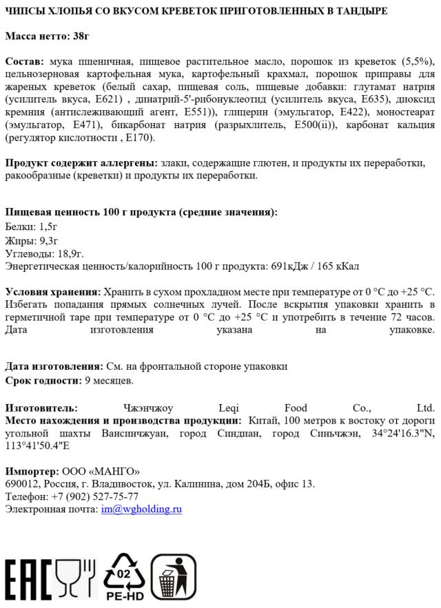 Чипсы-хлопья из ломтиков креветок, запечённых в тандыре - это лёгкая и хрустящая закуска, приготовленная из натуральных креветок. Тонкие ломтики креветок запекаются в духовке до хрустящей корочки, сохраняя при этом свой естественный вкус и аромат.Эти чипсы отличаются нежной текстурой, насыщенным морским вкусом и отсутствием лишнего масла, так как они не жарятся, а запекаются. Чипсы-хлопья из креветок - отличный выбор для тех, кто следит за своим здоровьем и предпочитает натуральные продукты.Лёгкий и хрустящий перекус с насыщенным морским вкусом. Без лишнего масла, только натуральные ингредиенты.