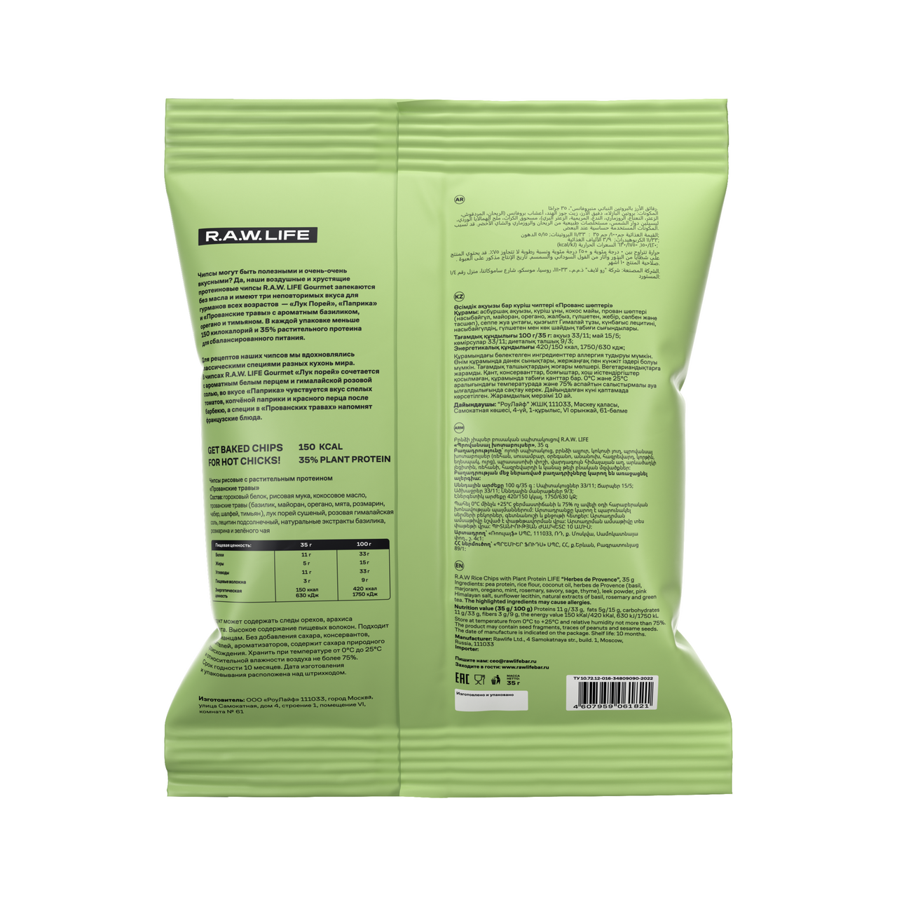 Чипсы запеченные с растительным протеином R.A.W. LIFE Прованские травы без глютена, 35г