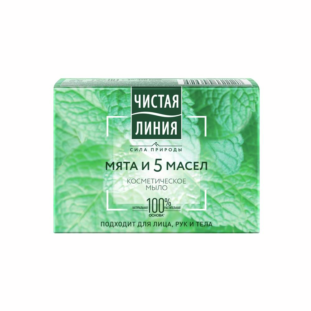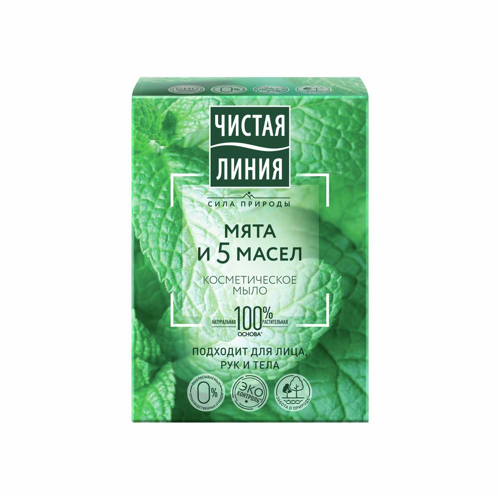 Мыло косметическое для лица, рук и тела Чистая Линия Сила природы мята и 5 масел, 90г