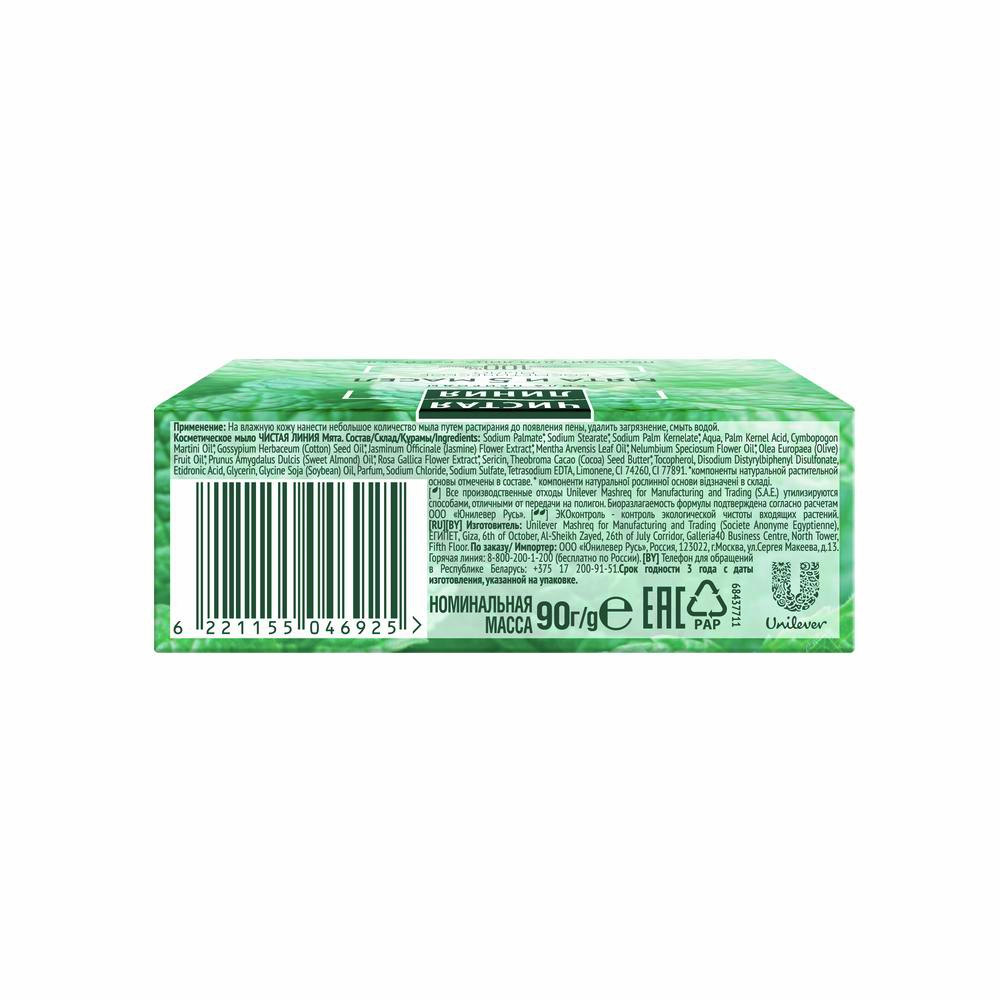 Чистые руки – твоя защита. Чаще мойте руки!Косметическое мыло от Чистой линии Свежая мята подарит бережный уход по выгодной цене!100% натуральная основа, натуральные экстракты и масла очищают и ухаживают за лицом, руками и телом.Косметическое мыло с натуральным экстрактом мяты бережно очищает и освежает кожу. Мыло удаляет бактерии, успешно смывая их с поверхности кожи вместе с другими ежедневными загрязнениями.После трудового дня коже требуется отдых. Очищение – первый и очень важный этап в уходе за кожей. Для того чтобы очищение было бережным и эффективным, необходимо знать потребности кожи и подобрать подходящее средство на натуральной основе. Косметическое мыло – отличный вариант бережного и эффек��ивного очищения. В отличие от обычного* твердого мыла, оно более бережно относится к коже, сохраняет ее увлажненность и поэтому подходит для очищения лица, рук и тела.Мыло Чистая Линия создано с использованием натуральных природных компонентов: экстрактов жасмина, розы, мяты, алоэ, соком персика и клубники. Объединив в себе натуральную растительную основу, полезные экстракты и фитомасла, наше твердое мыло делает кожу мягкой, шелковистой, тонизируя и освежая ее.Ассортимент средств Чистая линия включает в себя множ